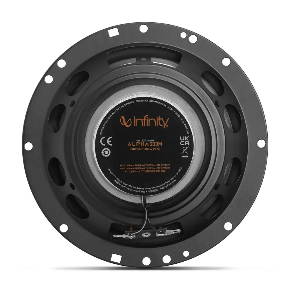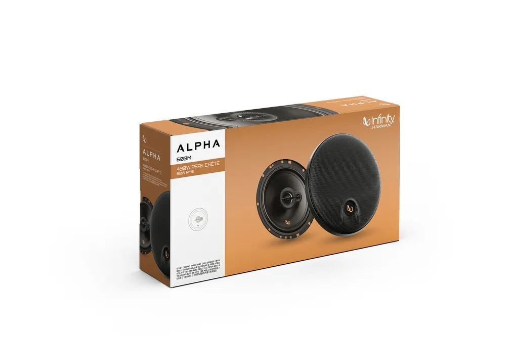 Infinity Alpha 603M — це сучасні 3-смугові коаксіальні динаміки, що поєднують у собі високу якість звучання, продуману інженерію та доступну ціну. Вони створені для тих, хто хоче отримати фірмовий звук Infinity у своєму авто та насолоджуватися повним спектром відтворюваних частот — від глибокого, насиченого басу до виразних середніх і чистих високих.