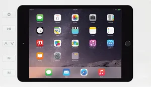 Настінна зарядна рамка Surface Mount для iPad mini 4 і iPad mini 5 c 6 кнопками для управління пристроями в Розумному будинку (AMX, Crestron, Control4, RTI, ELAN, URC, SAVANT і т.д.). Зроблена з алюмінію за допомогою високоточної лазерної обробки. Продумано отвори для динаміків і мікрофона, кнопки в