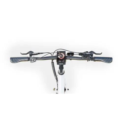ХарактеристикиТип: Гібридний електровелосипедКолір рами: БілийРозмір рами: 53 см (21”)Максимальна швидкість: 25 км/годМаксимальний пробіг без підзаряджання: до 85 кмДопустиме навантаження: 120 кгРекомендований зріст користувача: 170–190 смМотор: 250 Вт, 36 В, заднє розміщенняКрутний момент мотора: 35 Н·мАкумулятор: 7.8 А·год, 280 Вт·годЧас заряджання: 3–4 годиниПередача: 7 швидкостей, microShiftКасета: Shimano AMFTZ5007428 (14–28Т)Шатуни: 170 мм, анодований алюмінійГальма: Shimano BL-MT200, гідравлічні з роторами 16 смКолеса: 28 дюймів (700C x 35C, шини Kenda)Дисплей: Кольоровий TFT LCD, IP66Вага нетто: 19.5 кгВага брутто: 27.5 кгРозміри (Д x В x Ш): 172 x 102.5 x 69.5 смРама: Алюмінієвий сплавПередня вилка: Сталева, з можливістю встановлення дискових гальмКермова колонка: Алюміній 680 ммПідсідельний штир: Алюмінієвий, Ø2.72 смОснащення: Вбудовані світлодіодні фари, швидкознімні елементи, індикатори рівня заряду, автозбереження енергії