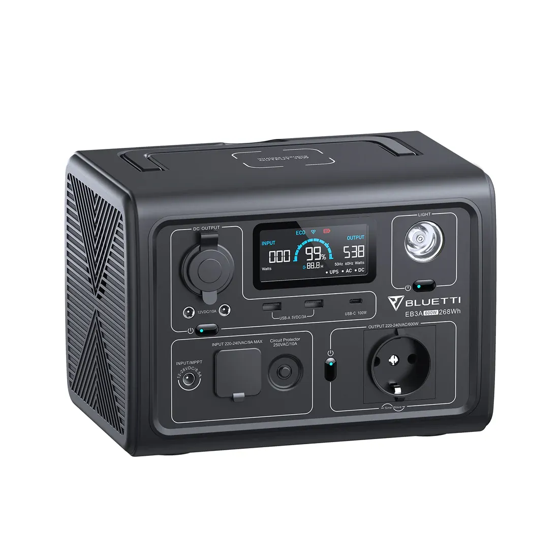 EB3A досить компактний, але ви можете розраховувати на нього при великих роботах. Незалежно від того, чи це невеликий блендер, міні-рисоварка чи невеликий холодильник, EB3A допоможе вам усе завдяки інвертору змінного струму на 600 Вт з чистою синусоїдальною хвилею (1200 Вт) і вражаючій потужності 268 Вт-год.