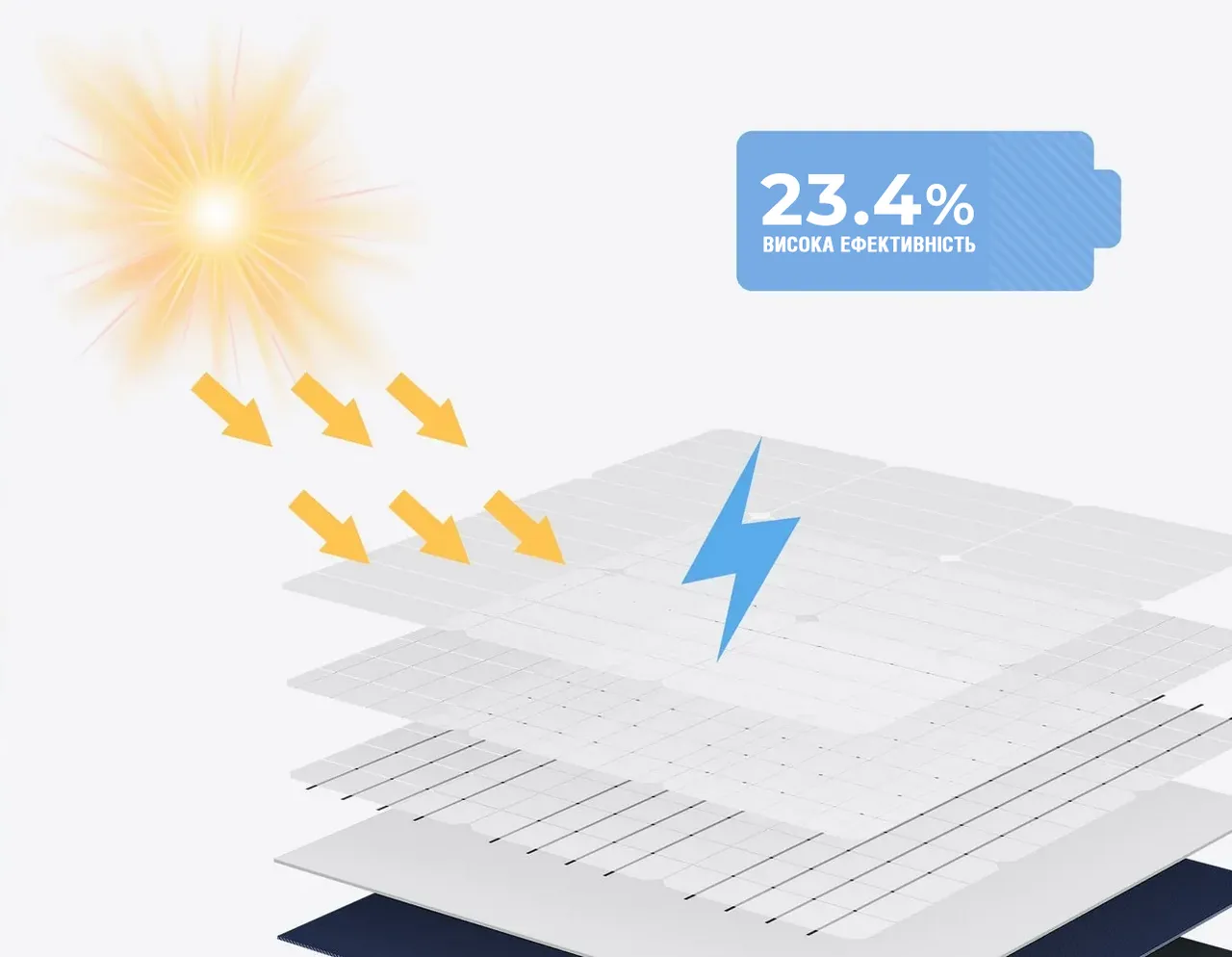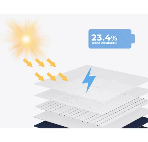- Вищий коефіцієнт перетворення сонячної енергії на електричну — до 23,4%.