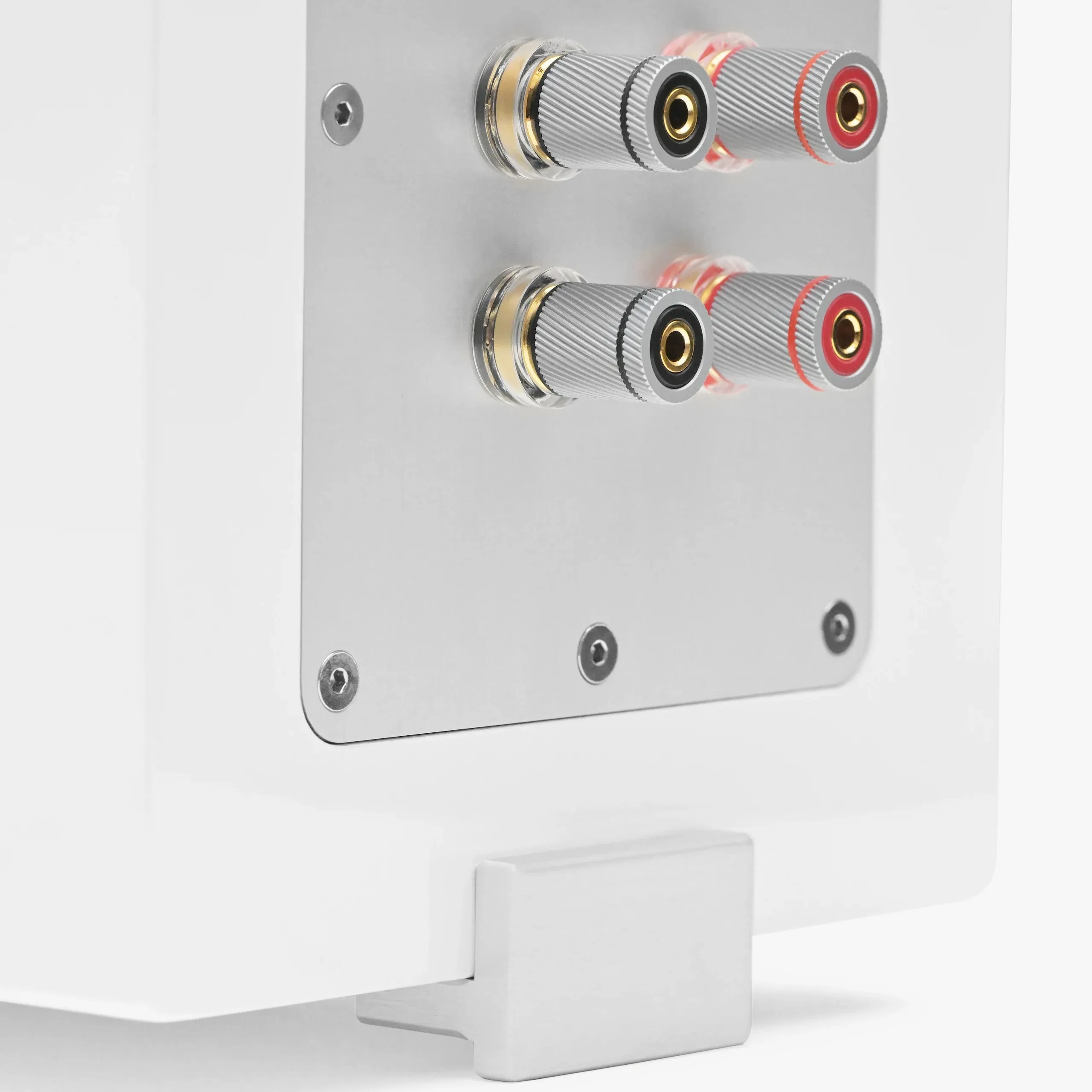 Корпус динаміка виготовлений з високої щільності та низькорезонансних матеріалів, що зменшують небажані вібрації та резонанси, забезпечуючи збалансоване та потужне звучання. Алюмінієва передня панель, анодована сріблом, додає елегантності та сучасного вигляду, а також допомагає оптимізувати напрям звукових хвиль.