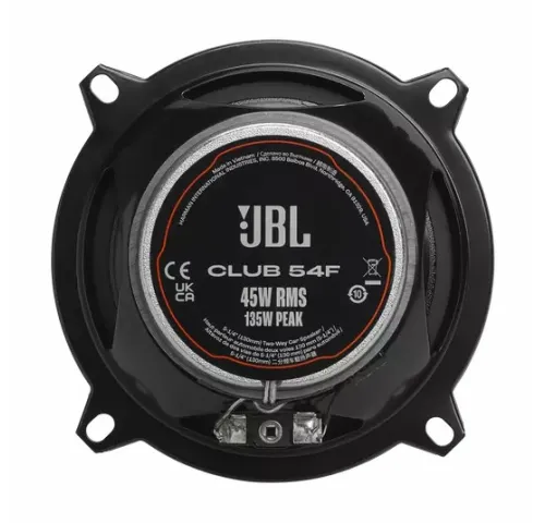 JBL Club 54F представляє собою пару коаксіальних автомобільних гучномовців, які відзначаються компактним дизайном, дозволяючи їм поміститися в більшість автомобілів. Гучномовці оснащені технологією Edge-driven Silk Dome Tweeter, яка забезпечує ширший і гладший відгук на високих частотах без будь-яко