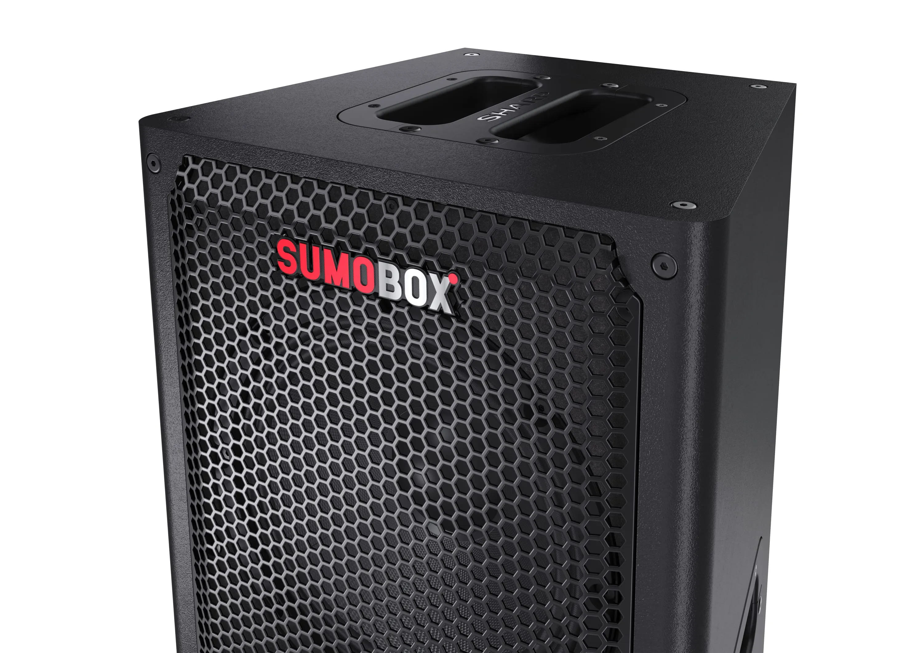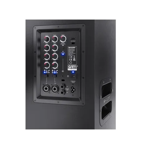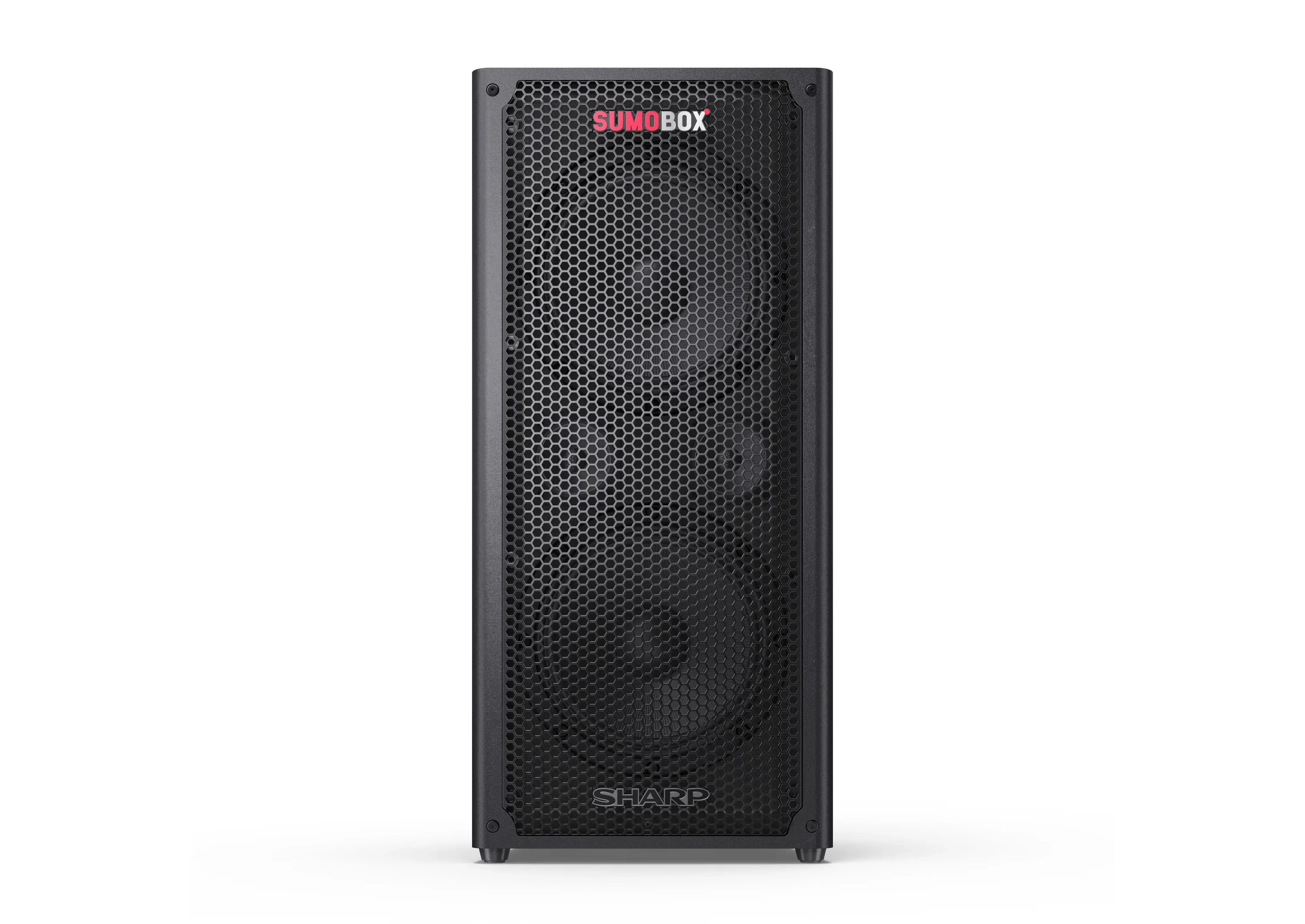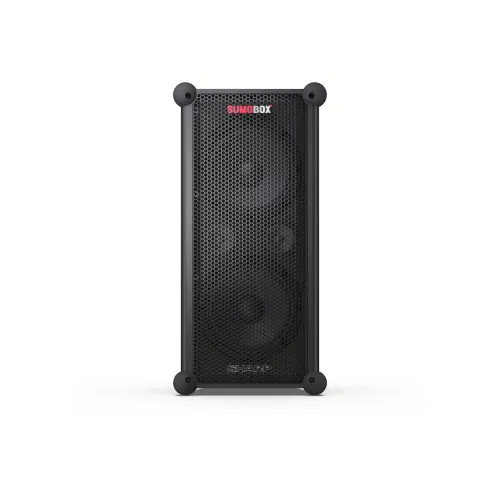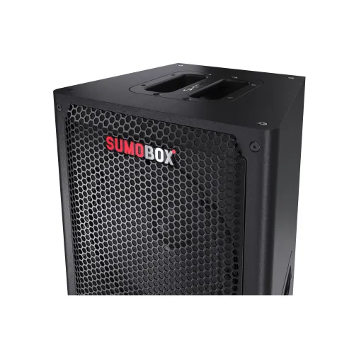 Sharp SumoBox є високопродуктивною портативною акустичною системою моделі CP-LS100, яка може забезпечити до 105 дБ чистого звукового задоволення завдяки своїм двома 8-дюймовим вуферам та двома 2-дюймовим високочастотним динамікам, загальна потужність яких становить 120 Вт.Акумулятор та тривалість ро