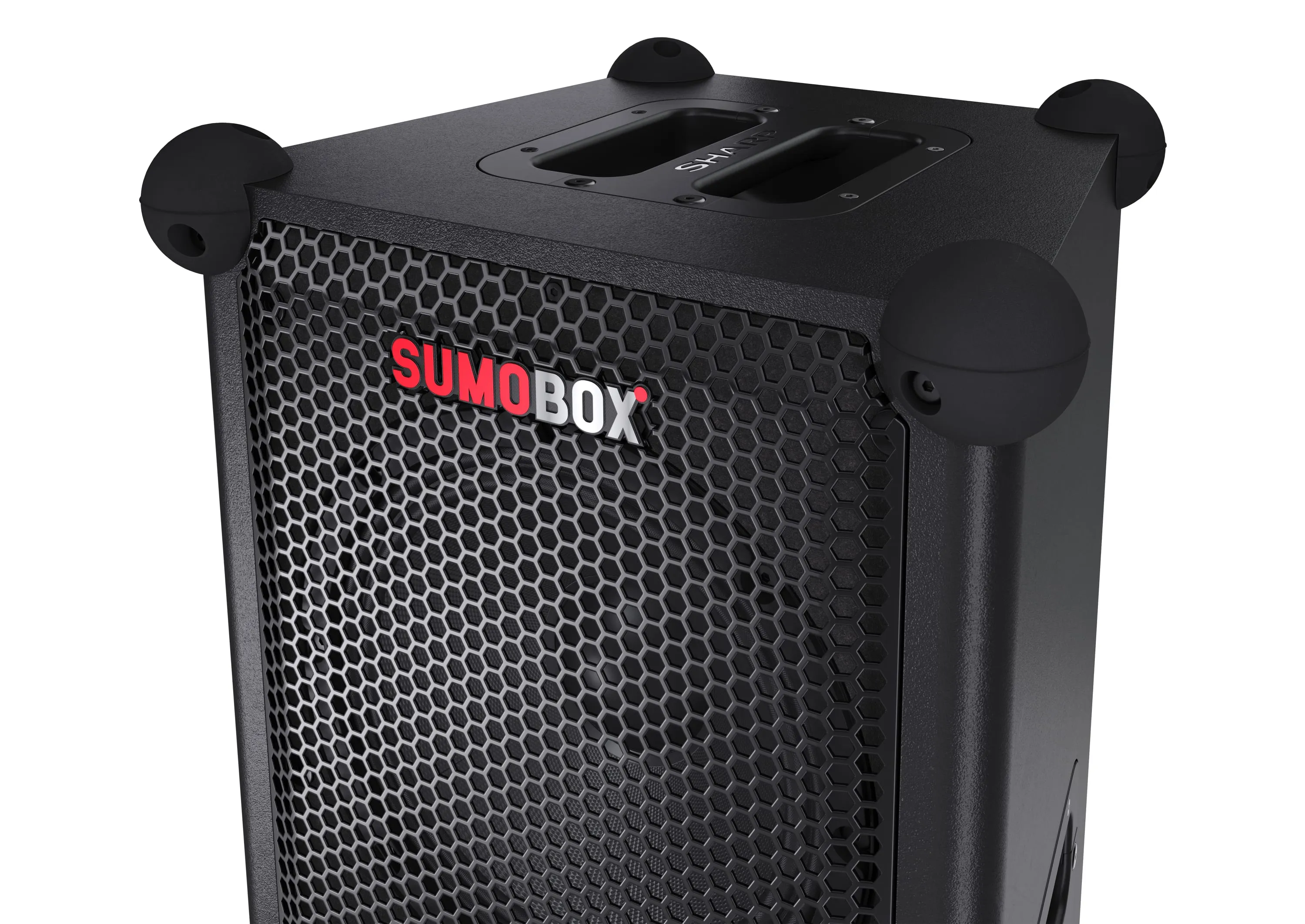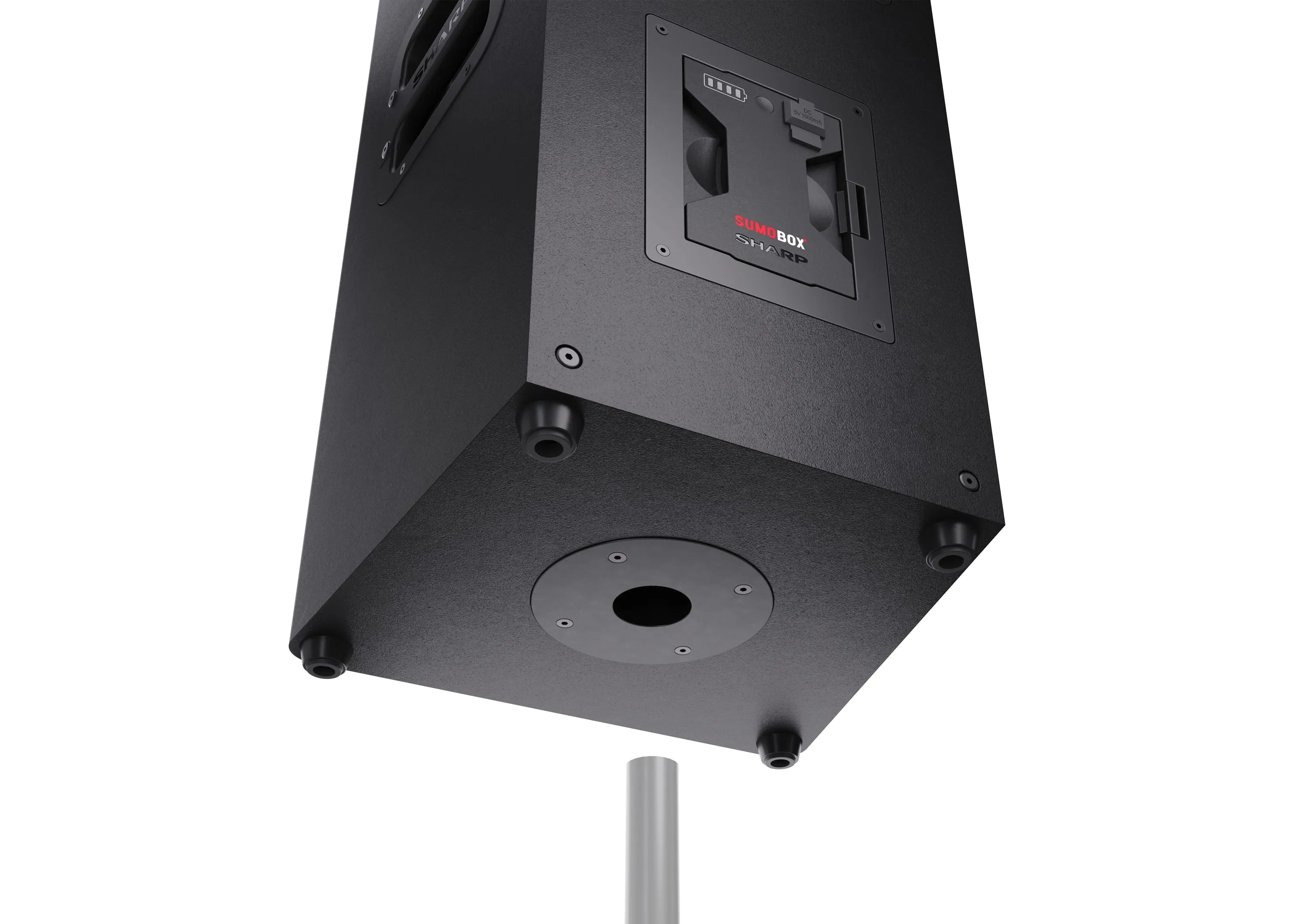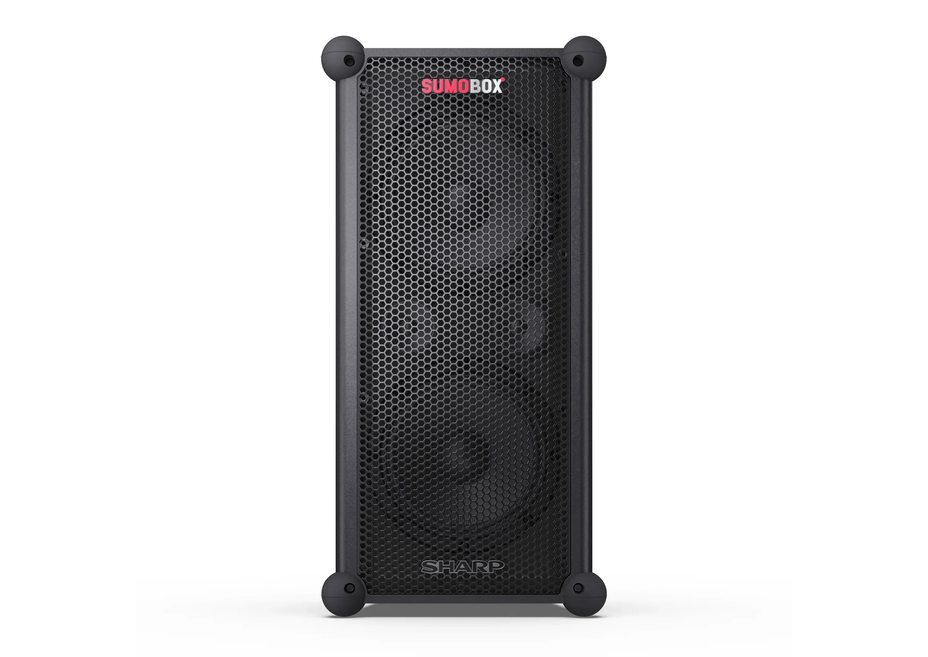 Sharp SumoBox є високопродуктивною портативною акустичною системою моделі CP-LS100, яка може забезпечити до 105 дБ чистого звукового задоволення завдяки своїм двома 8-дюймовим вуферам та двома 2-дюймовим високочастотним динамікам, загальна потужність яких становить 120 Вт.Акумулятор та тривалість ро