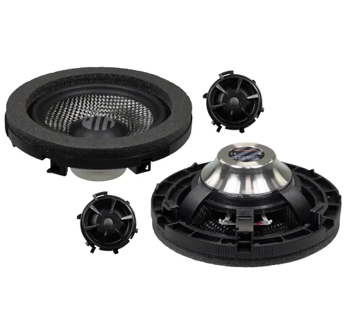 Центральним елементом конструкції є високотехнологічні дифузори з вуглецевого волокна, які поєднують легкість і жорсткість. Це дозволяє отримати чітке, насичене середньочастотне звучання без спотворень. На відміну від звичайних поліпропіленових або паперових дифузорів, вуглецеве волокно забезпечує вищу точність і контроль відтворення. Потужні компактні неодимові магніти в сталевих корпусах додають драйвовості, а при цьому не займають зайвого простору.
