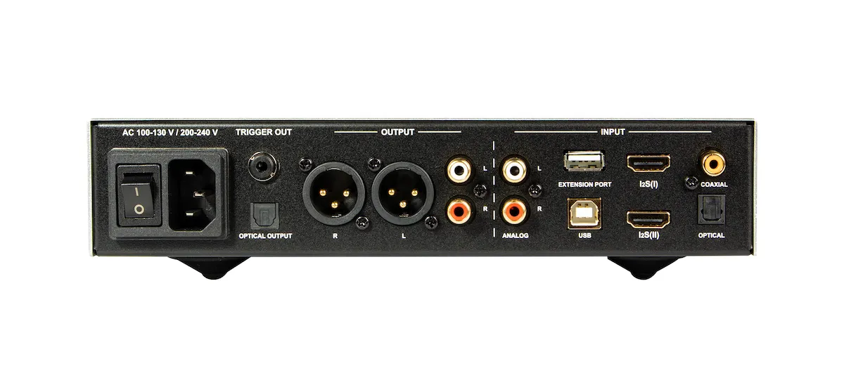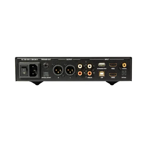 ХарактеристикиЦАП: 2 x ESS9028Q2M (Dual Mono)Підтримувані формати: PCM до 384 кГц, DSD256, MQAВходи: 1 x коаксіальний, 1 x оптичний, 1 x USB, 2 x I²S/DSD, 1 x RCA (аналоговий)Виходи: RCA (4 Vrms), XLR (8 Vrms), 6.3 мм для навушниківВихід для навушників: TRS 6.3 мм стандартний стереоЧастотна характеристика: 20 Гц – 20 кГц (±0.3 дБ)Співвідношення сигнал/шум (SNR): > 110 дБГармонічні спотворення (THD+N): < 0.0005%Оптичний вихід: S/PDIF (до 192 кГц, підтримка DoP DSD64)Живлення: 90–130 В / 210–250 В з перемикачемГабарити (Ш x В x Г): 235 x 60 x 281 ммВага: 2.5 кгДодаткові функції: Розширювальний порт для Bluetooth/Wi-Fi