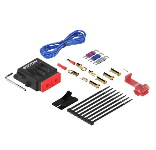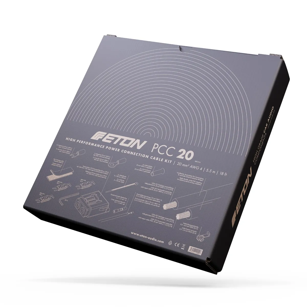 ОписETON PCC 20 – Високоякісний монтажний комплект живлення 20 мм² для потужних автомобільних аудіосистемETON PCC 20 — це професійний набір силових кабелів класу High Performance, спеціально розроблений для підключення потужних підсилювачів, активних сабвуферів та іншої високопродуктивної автомобільної аудіоелектроніки. Завдяки великому перерізу кабелів 20 мм² (AWG 4), набір забезпечує максимальну стабільність струмопостачання навіть при великих навантаженнях. Висока якість компонентів, продумана ергономіка і повна комплектація аксесуарами роблять PCC 20 ідеальним вибором як для професійної інсталяції, так і для ентузіастів автозвуку.Основою комплекту є мідні кабелі з 100% безкисневої міді (OFC), які мають надзвичайно гнучку, але стійку до зламів та перегинів ізоляцію із ПВХ зі спеціальним покриттям. Основний червоний кабель B+ довжиною 5,5 м і заземлювальний чорний GND довжиною 1 м обладнані заводськими пресованими кільцевими наконечниками, що спрощує монтаж і гарантує надійний контакт.До комплекту входить водонепроникний тримач запобіжників AFS, сумісний із MINI ANL та ATC запобіжниками, включно з варіантами 100 A, 80 A та 60 A. Завдяки широкому набору монтажних елементів — феритів, клем, кабельних стяжок, липучої стрічки, обтискних роз’ємів та шестигранного ключа — PCC 20 є повноцінним рішенням, що дозволяє швидко, зручно та акуратно реалізувати силове підключення в автомобілі.ETON PCC 20 — це зразок німецької інженерної якості, яка задовольнить найвищі вимоги до надійності та продуктивності автомобільного аудіо.Особливості: