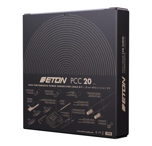 ETON PCC 20 – Високоякісний монтажний комплект живлення 20 мм² для потужних автомобільних аудіосистемETON PCC 20 — це професійний набір силових кабелів класу High Performance, спеціально розроблений для підключення потужних підсилювачів, активних сабвуферів та іншої високопродуктивної автомобільної
