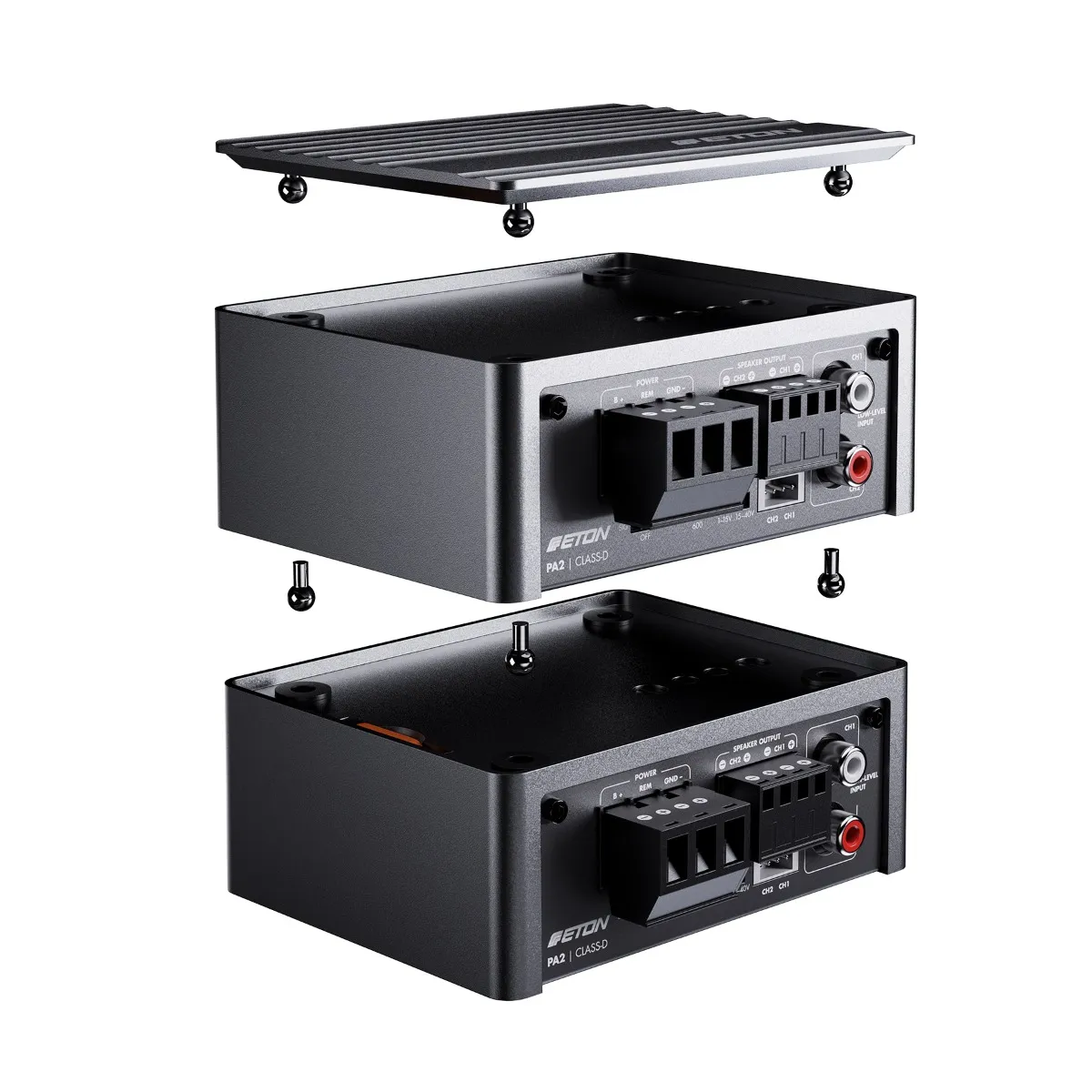 ОписETON PA2 – це надзвичайно компактний 2-канальний підсилювач класу D, що поєднує найвищу продуктивність та мінімальний розмір, ідеально підходить для прихованого монтажу в автомобілі. Оснащений передовою технологією Advanced Class-D, цей підсилювач досягає максимальної потужності до 2 x 140 Вт RMS, при цьому має дуже низький рівень спотворень THD+N – всього 0.01%, забезпечуючи чисте і якісне звучання. Високоякісний корпус з литого алюмінію з покриттям gunmetal та знімними роз'ємами робить цей підсилювач не тільки ефективним, але й зручним у встановленні та налаштуванні. Завдяки широкому набору активних фільтрів і входів (високого та низького рівня) PA2 є справжнім універсальним рішенням для будь-якої аудіосистеми.Особливості та переваги
