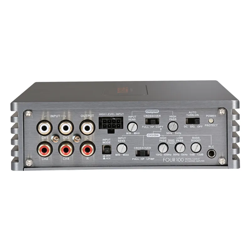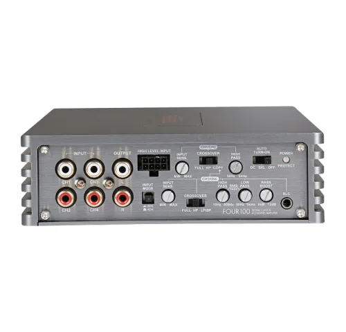Характеристики4 x 120/200 Вт RMS при 4/2 Ом2 x 400 Вт RMS при 4 Ом в мостовом режимеФильтр высоких частот 50–5000 Гц (CH1/2)Фильтр верхних частот 10–500 Гц (CH3/4)Фильтр нижних частот 50–5000 Гц (CH3/4)Усиление басов 0–12 дБ (CH3/4)Функция полосы пропускания (CH3/4)CH3/4 > CH1/2 Функция копированияПереключатель режима входа CH2/CH4Входы RCA, выходы RCAВходы высокого уровня с EPSФункция автоматического включенияБасовый пульт дистанционного управленияРазмеры: 150 х 45 х 220 мм