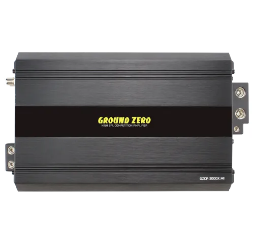 Ground Zero GZCA 3000X.M1 — моноблок для змагальних систем, розрахований на максимальну віддачу та контроль сабвуфера в SPL і SQL конфігураціях. Високоефективна технологія класу D у поєднанні зі стабілізованим високовольтним блоком живлення дозволяє отримувати потужний, щільний бас і впевнено працюв
