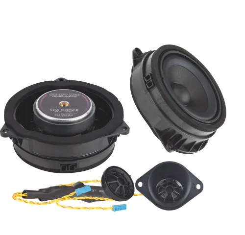 Спеціальна автомобільна 2-смугова акустична система 100 мм для BMW.2-смуговий динамікЗроблено в НімеччиніКонус з пресованого паперуГумовий підвісВисокоефективна версія на 3 ОмТвітер з шовковим куполом 25 мм / 1 "Вкл. монтажна рама твітераСпеціальні роз'єми для легкого підкл. до BMW