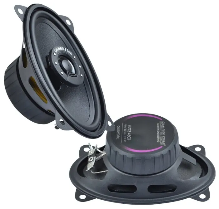Ground Zero GZCS 46CX - це високоякісна 2-х смугова коаксіальна акустична система з розміром динаміку 100х150 мм, номінальною довготривалою потужністю RMS 70 Вт, і максимальною потужністю, заявленою виробником, 110 Вт. Діапазон відтворюваних частот досить широкий від 80 до 20000 Гц. Рівень чутливості 89 дБ.