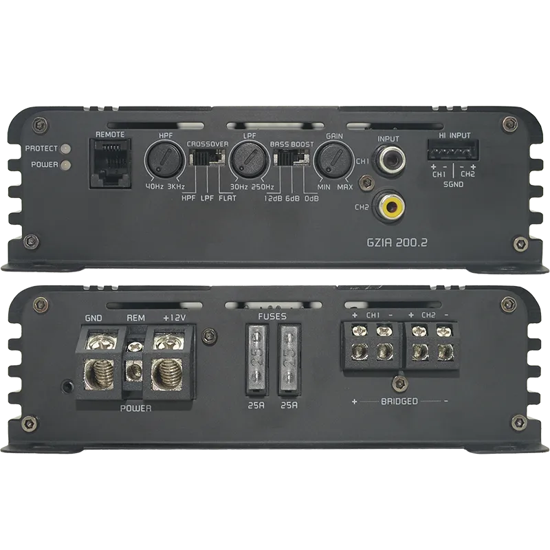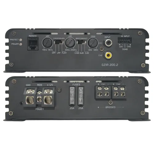 Ground Zero GZIA 200.2 — двоканальний підсилювач класу A/B, створений для систем, де важливі чистота, контроль і впевнена віддача на акустику або сабвуфер у мостовому режимі. Завдяки стабільному живленню він зберігає динаміку під навантаженням і добре підходить як для фронтальних каналів, так і для