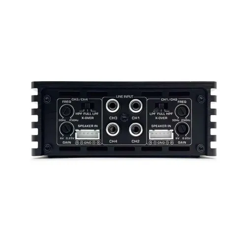 ХарактеристикиТип підсилювача:: Клас D, повний діапазонКількість каналів:: 4Потужність @ 4 Ом:: 4 х 150 Вт RMSПотужність @ 2 Ом:: 4 х 200 Вт RMSПотужність у мостовому режимі @ 4 Ом:: 2 х 350 Вт RMSКоефіцієнт спотворень (THD) @ номінальній потужності:: < 0.5%THD + Noise:: < 0.1%Співвідношення сигнал/шум:: > 90 дБЧастотна характеристика:: 20 Гц – 20 кГц (±1 дБ)Вхідна чутливість:: 0.25 – 6 ВТип входів:: RCA та високорівневіГабарити (Ш х Г х В):: 18 см x 11.5 см x 4.55 см