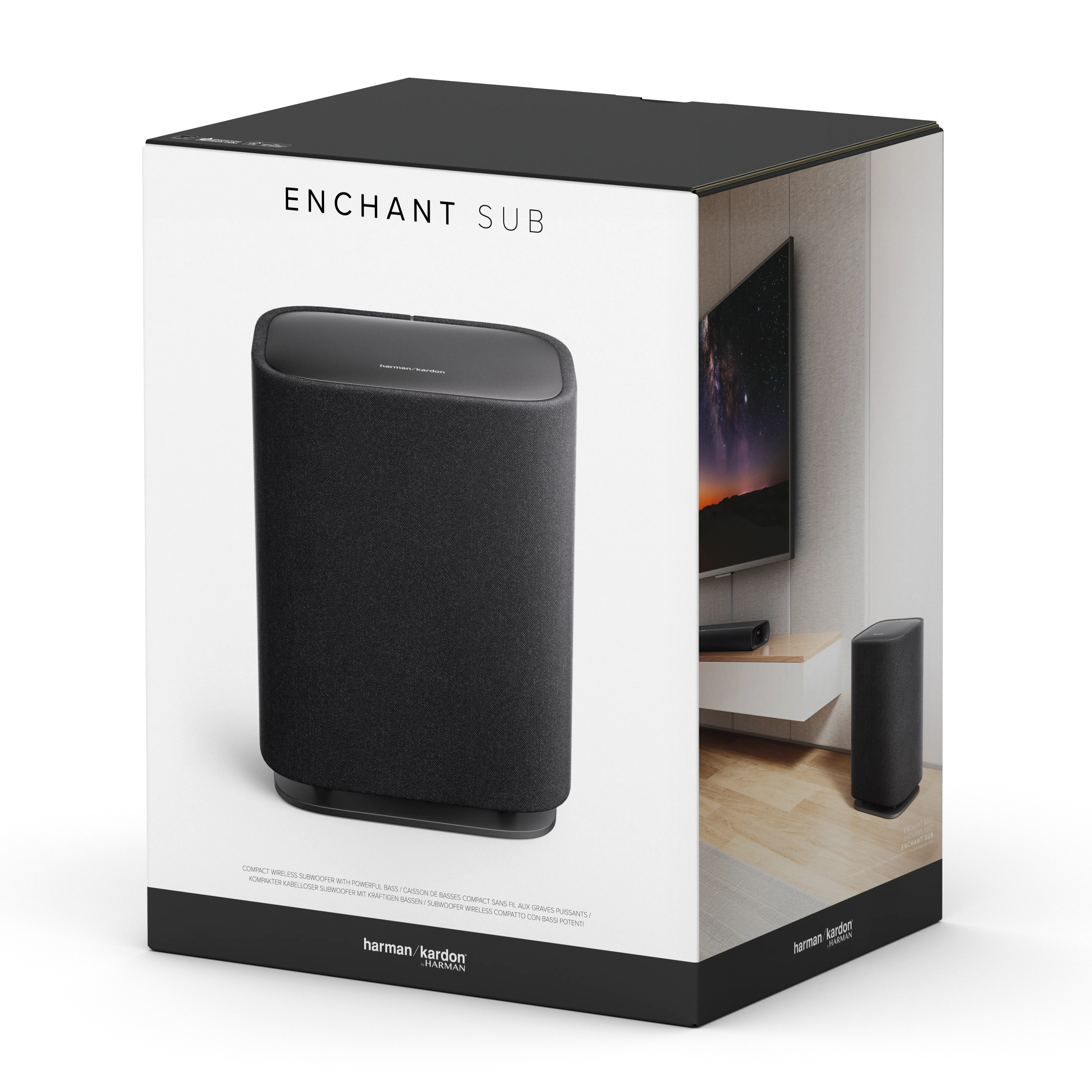 Harman Kardon Enchant Sub: Зробіть ваші фільми ще видовищнішимиПеретворіть і без того чудове звучання вашого саундбара Enchant на щось неймовірне. У цьому полягає магія сабвуфера Harmon Kardon Enchant Sub. Бездротово підключіть його до Enchant 900 або Enchant 1100, і ви миттєво відчуєте, як широка т