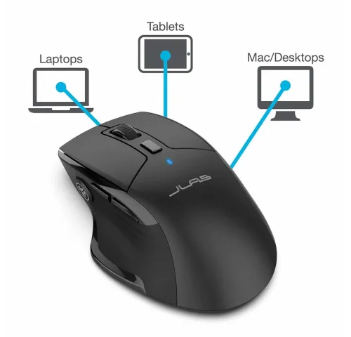 Безперебійне підключення: Миша JBuds дозволяє підключатися до пристроїв через Bluetooth або бездротовий USB-донгл, надаючи можливість легкого перемикання між трьома збереженими пристроями. Це ідеально підходить для роботи з кількома комп'ютерами або пристроями одночасно.