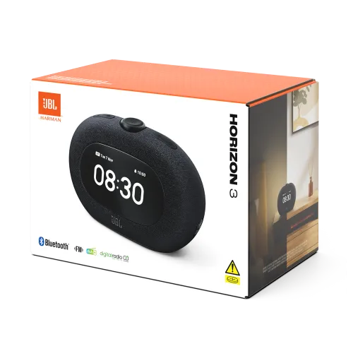 Прокидайтеся разом із JBL Pro Sound.Зустрічайте ранок разом із JBL Horizon 3. Прокидайтеся освіженими під ніжне сяйво світанку. Починайте день по-своєму — з енергією, яку дарує надихаюча музика у потужному фірмовому звучанні JBL Pro, що наповнює кімнату. А ввечері розслабтеся під улюблену FM-станцію