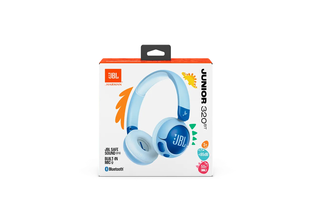 ОписJBL Safe Sound <85дБНавушники JBL Junior 320BT розроблені так, щоб рівень гучності ніколи не перевищував 85 дБ. Це дозволяє вашим дітям насолоджуватися таким самим чудовим звуком, який зробив JBL легендою, але на безпечному для їхнього слуху рівні.Батьківський контроль з можливістю налаштування гучності та часу прослуховуванняВи можете використовувати автоматичне обмеження максимальної гучності до 85 дБ або налаштувати ще нижчу гучність. Крім того, можна встановити налаштування захисту слуху, обмеживши як максимальну гучність, так і щоденний час прослуховування.Легкий моніторингЗавдяки застосунку JBL Headphones можна отримувати звіти в реальному часі про те, скільки часу та на якій гучності слухають діти. Перевіряйте щоденні та тижневі звіти про використання і гучність. Також можна встановити власний PIN-код для захисту налаштувань.Вбудований мікрофонНавушники JBL Junior 320BT оснащені вбудованим мікрофоном, щоб діти могли залишатися на зв'язку з навколишнім світом. Вони можуть спілкуватися з учителями під час навчання або розмовляти з друзями та рідними у вільний час.Акумулятор на 50 годинНавушники JBL Junior 320BT забезпечують тривалий час роботи – до 50 годин, і швидко заряджаються завдяки зручному кабелю USB-C. П'ятихвилинне заряджання дає додаткові три години роботи.Ідеально підходять для дітейНавушники JBL Junior 320BT доступні в трьох веселих кольорах і мають 12-мм м’яку подушку на наголів'ї для комфортного тривалого носіння, меншого витоку звуку та покращеного звучання. Наголів'я можна відрегулювати під розмір голови дитини, що покращує звучання та адаптується до росту дитини. Навушники також складаються пласко, що дозволяє легко зберігати їх у сумці або рюкзаку.Легке управлінняМіцні кнопки управління, зручні для дітей, роблять навушники JBL Junior 320BT легкими та безпечними для використання дітьми.Повторне використання упаковкиБезпластикова упаковка трансформується у підставку для пристрою, а також до комплекту входить набір веселих наліпок JBL, щоб діти могли персоналізувати свої навушники.