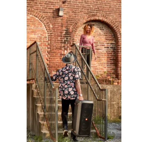 JBL PartyBox 300 –  потужна акустична система з Bluetooth. Динамік оснащений акумулятором, що перезаряджається, входом 12 В постійного струму, входом для мікрофона/гітари і USB-портом. Легендарний звук JBL- насолоджуйтесь легендарним звучанням JBL вдома та на вечірці. Світлові ефекти доступні в трьох режимах: Meter, Pulse та Party. Колонка може працювати від зарядного пристрою або ж зі вбудованого акумулятора, який забезпечує безперервну гру до 18 годин.
