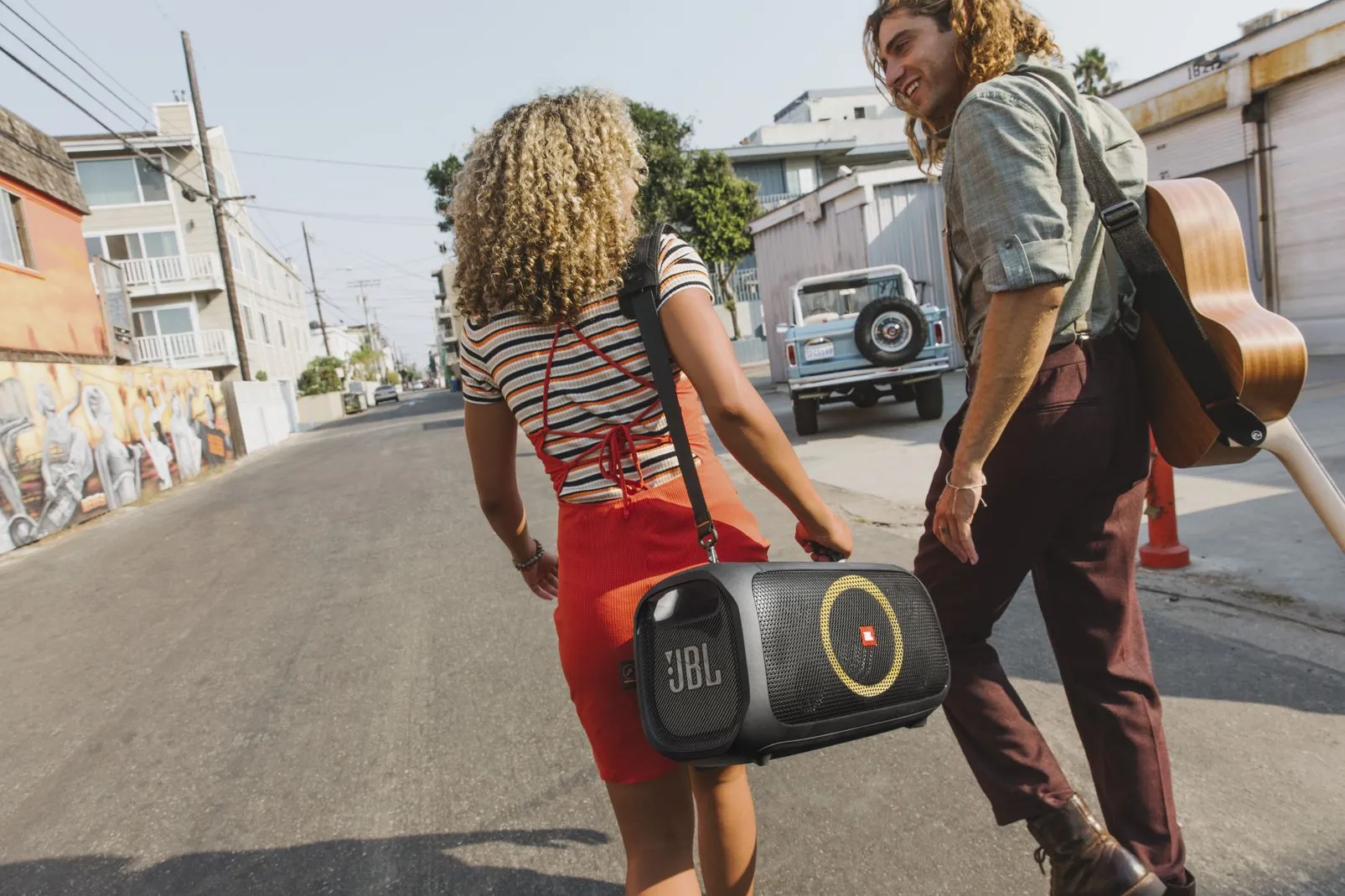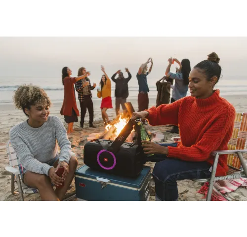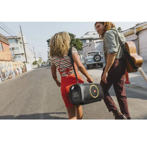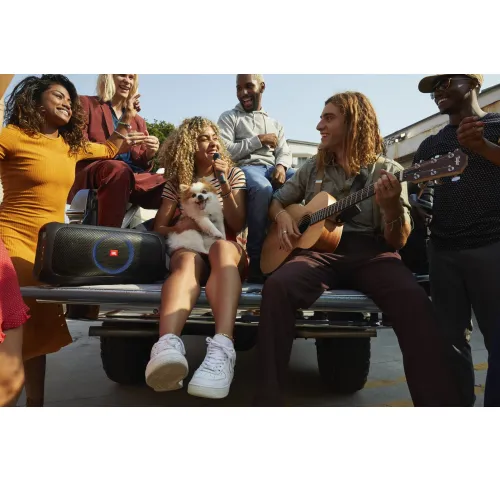 Починаючи з відкривачки для пляшок і м'якого плечового ременя, закінчуючи акумулятором на шість годин і захистом від бризок IPX4 - в JBL PartyBox On-The-Go є все необхідне, щоб почати вечірку - просто візьміть его з собою.