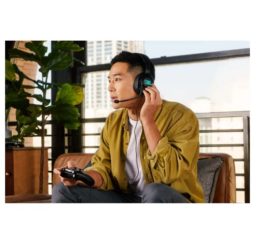 Гарнітура JBL Quantum 400 створена для гри на ПК, але підтримує також Xbox ™, PlayStation ™, Nintendo Switch ™, мобільні пристрої, Mac, і VR.