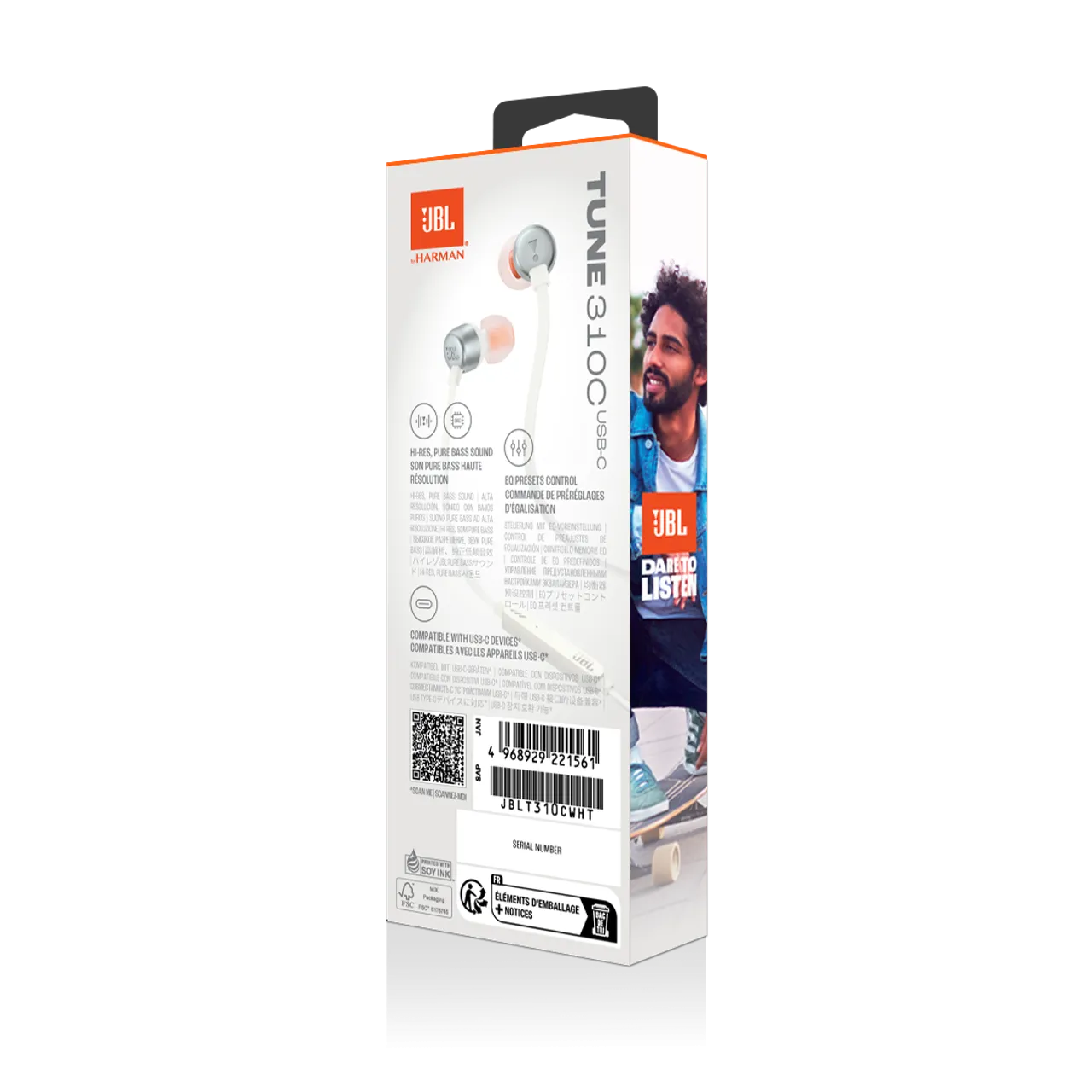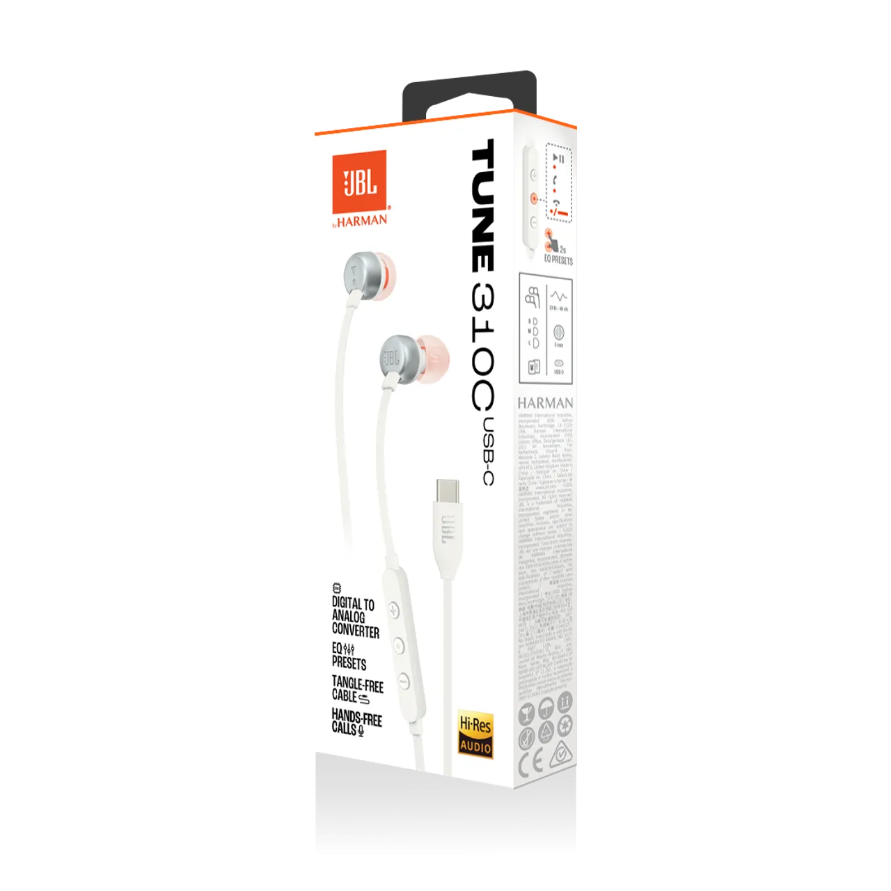ОписЗвук JBL Pure Bass, сертифікований Hi-ResПонад 75 років JBL розробляє точне, вражаюче звучання, яке можна знайти у великих залах по всьому світу. Ці навушники відтворюють той самий звук JBL, відтворюючи глибокі та потужні баси. Аудіо високої чіткості забезпечує чітке та деталізоване звучання.Сумісний із пристроями USB-CПотрібно підключитися до ПК, мобільного або приставки? Підключення USB-C забезпечує сумісність із широким спектром пристроївБудь ласка, перевірте сумісність USB-C із вашим пристроєм3-х кнопковий пульт з мікрофономКеруйте відтворенням музики та регулюванням гучності за допомогою зручного трикнопкового пульта. Є вхідний дзвінок? Відповідайте на нього на ходу за допомогою вбудованого мікрофона.Керування попередніми налаштуваннями еквалайзераОберіть «За замовчуванням», «Бас» або «Вокальний», щоб знайти звук на свій смак за допомогою 3-кнопкового пульта на дроті.Плоский кабель без сплутуванняМіцний плоский кабель не заплутується у вузли навіть у сумці.1 x навушники JBL Tune 310C USB-C1 х 3 розміри амбушюр1 x Гарантія / Попередження (W / !)1 x продукт QSG/ Паспорт безпеки (S / i)