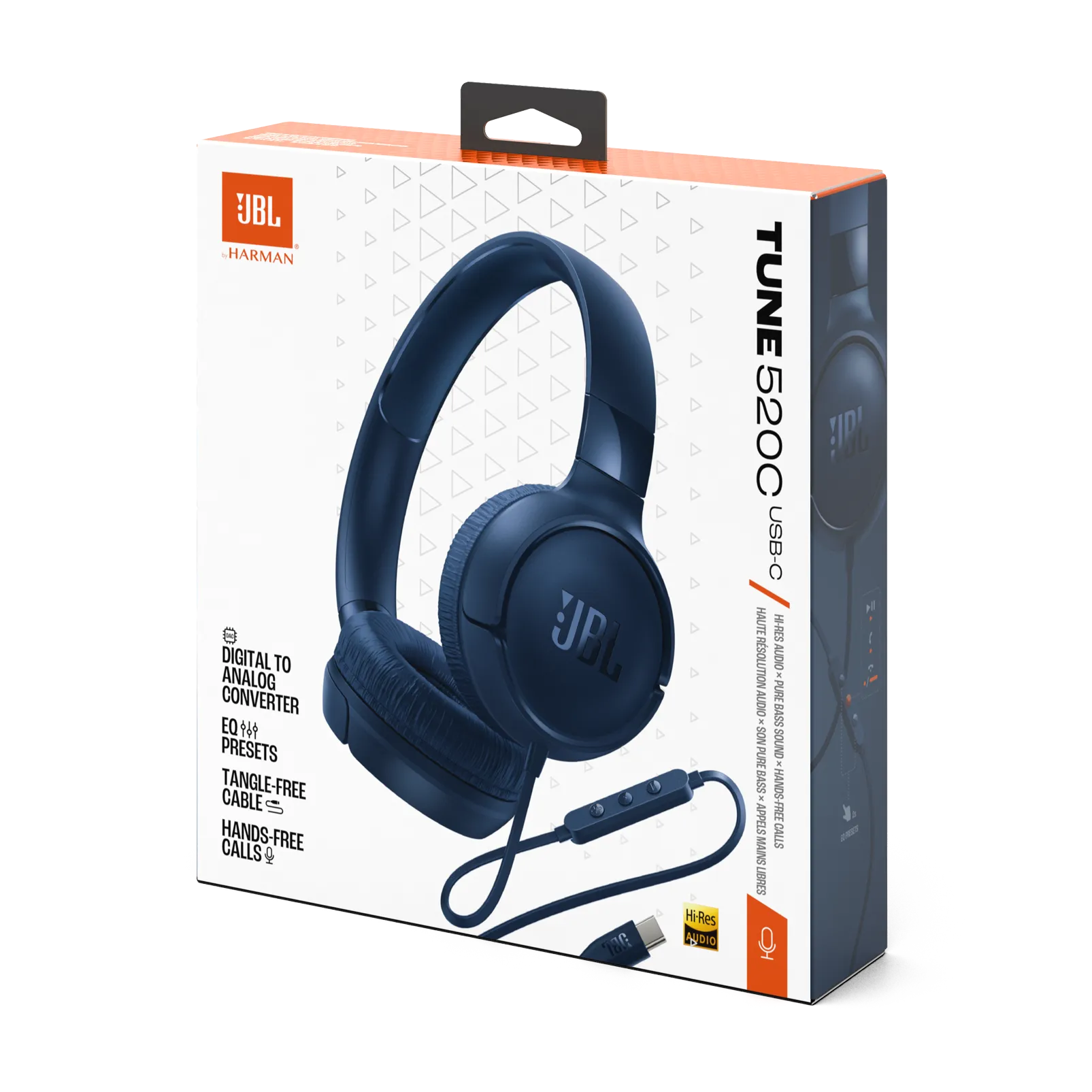 ОписHi-Fi аудіо — тепер завжди з вами.Додайте музики у свій день із зручними дротовими навушниками JBL Tune 520C USB-C. Вони легкі та досить комфортні, щоб носити їх протягом усього дня, а завдяки складаній конструкції легко вміщуються навіть у найпереповненішу сумку. Два 32-міліметрові динамічні драйвери забезпечують потужне, насичене звучання JBL Pure Bass. Підтримка аудіо високої роздільної здатності гарантує, що ваша музика завжди звучатиме максимально якісно. Підключайте навушники до будь-якого пристрою з USB-C — від ПК та ноутбуків до смартфонів, планшетів і навіть ігрових консолей. Приймайте дзвінки з кришталевою чіткістю за допомогою зручно розміщеного мікрофона та керуйте відтворенням, гучністю і налаштуванням еквалайзера за допомогою простого трикнопкового пульта. Усе це — на міцному плоскому кабелі, який не сплутується у вашій сумці. На роботі, вдома та особливо в дорозі JBL Tune 520C USB-C стане вашим щоденним супутником.Особливості та перевагиАудіо високої роздільної здатностіНасолоджуйтеся повноцінним цифровим звучанням Hi-Res 96 кГц / 24 біти завдяки DSP-чипу.Фірмове звучання JBL Pure BassСлухайте чисте й потужне басове звучання від пари 32-міліметрових динамічних драйверів.Широка сумісністьСьогодні майже кожен цифровий аудіопристрій має USB-C. Ви можете підключити JBL Tune 520C USB-C практично до будь-якого пристрою — ПК, мобільних телефонів, ігрових приставок, планшетів та ноутбуків.**Перевірте сумісність USB-C з вашим пристроєм.Трикнопковий пульт з мікрофономВикористовуйте зручно розміщений мікрофон для приймання дзвінків з кришталевою якістю звуку. Або керуйте відтворенням музики, змінюйте гучність чи перемикайте режими еквалайзера — усе під рукою.Попередньо встановлені режими еквалайзера (EQ)Використовуйте стандартний режим для збалансованого звучання одразу після розпакування. Оберіть Bass для посилення низьких частот і додаткової енергії, або Vocal для підкреслення середніх частот і чіткішого вокалу.Комфортна посадка та складаний дизайнМ’які амбушюри дозволяють носити навушники цілий день без дискомфорту. Коли ви не слухаєте музику, їх можна скласти для зручного зберігання.Плоский кабель, що не заплутуєтьсяНаш плоский USB-C кабель має посилене з'єднання для більшої надійності та не сплутується у вашій сумці.
