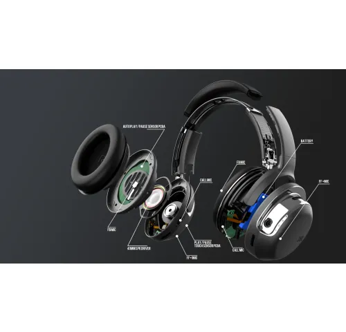 ХарактеристикиРозмір випромінювача: 40 мм (1,58 дюйма) Динамічний випромінювачДжерело живлення: 5 В/1,5 AВага: 272 гТип акумулятора: літій-іонний акумулятор (920 мА*год/3,7 В)Час зарядки: 2 години із повністю розрядженого стануЧас відтворення музики з вимкненим Bluetooth та ANC: до 50 годинЧас відтворення музики з увімкненим Bluetooth і функцією ANC: до 30 годинЧас розмови з вимкненим ANC: до 30 годинЧас розмови з увімкненим ANC: до 21 годиниЧастотна характеристика (в пасивному режимі): 10 Гц-40 КГцЧастотна характеристика (активна): 10 Гц-22 КГцІмпеданс: 32 ОмЧутливість: УЗД 117 дБ при 1 кГцМаксимальна УЗД: 93 дБЧутливість мікрофона: -38 дБВ/Па при 1 кГцВерсія Bluetooth: 5.3Версія профілю Bluetooth: A2DP 1.3.2, AVRCP 1.6.2, HFP 1.7.2Діапазон частот передавача Bluetooth: 2400 МГц – 2483,5 МГцПотужність передавача Bluetooth: < 4 дБмМодуляція передавача Bluetooth: GFSK, π/4-DQPSK, 8DPSKМаксимальна робоча температура: 45 °C