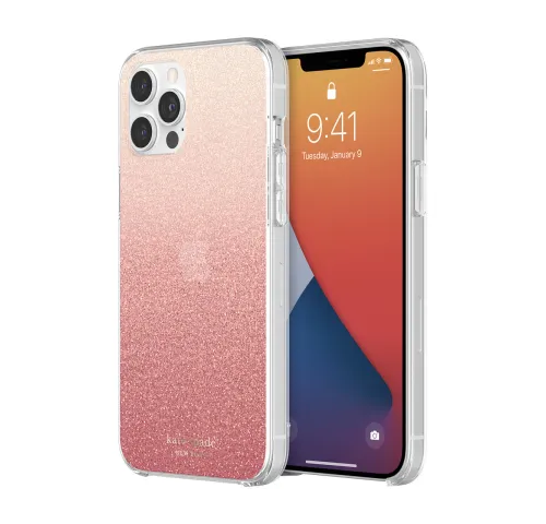 Захисний жорсткий чохол Kate Spade New York - це поєднання високої моди та повсякденної зручності. Суцільний блискучий узор ombre зовні з нанесеним з фольги логотипом бренду внизу на прозорій основі чохла - це те, що надасть вашому пристрою блиск яскравої індивідуальності.