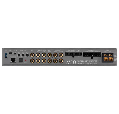 Система розроблена для максимальної гнучкості підключення: підтримуються як високорівневі, так і низькорівневі входи, що дозволяє інтегрувати M10 у практично будь-яку штатну аудіосистему. Десять високорівневих входів із підтримкою напруги до 32 В RMS (на каналах 9 і 10) захищені системою EPS® — інтелектуальним захистом від діагностичних помилок. Завдяки цьому підсилювач чудово справляється навіть з найскладнішими конфігураціями.