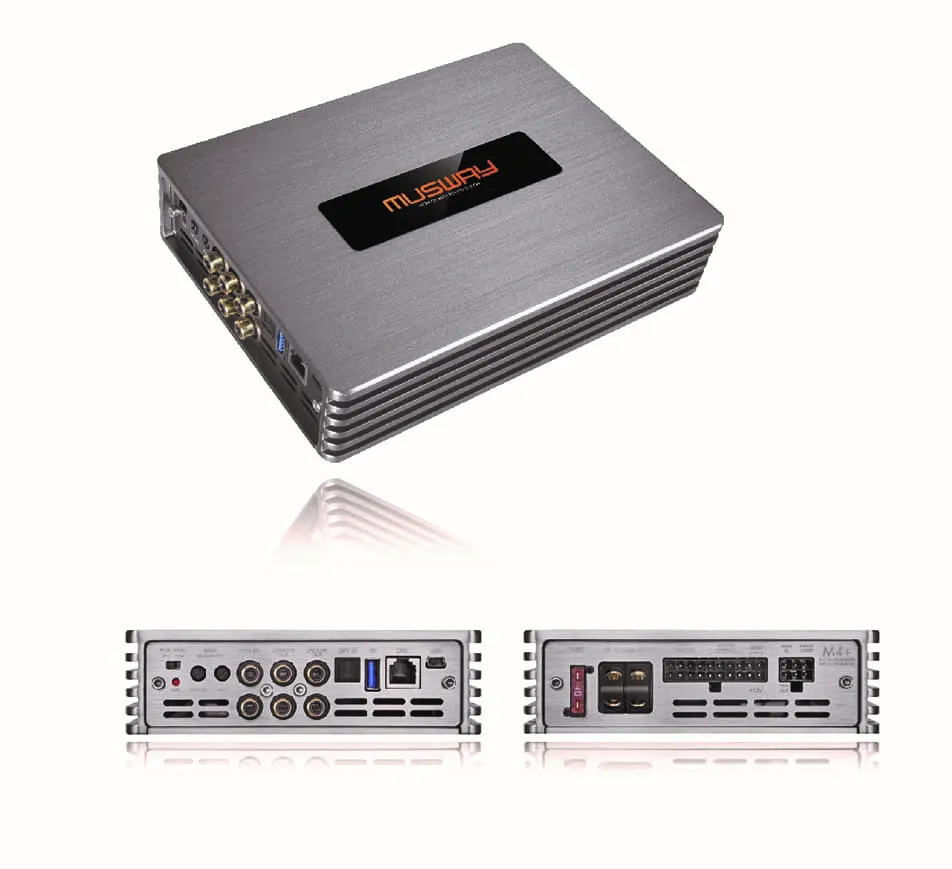 Виходи: 4 виходи високого рівня, 4 виходи підсилювача RCA (настроюється через DSP)