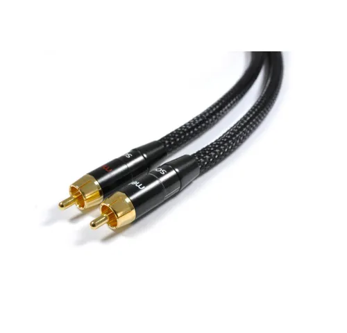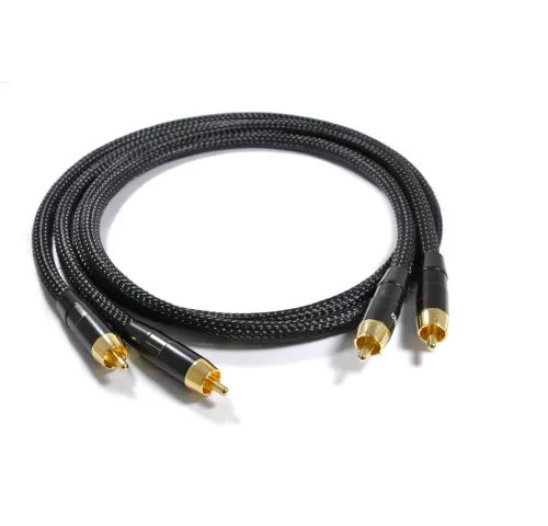 Для підключення застосовуються RCA-конектори з 24-каратним золотим покриттям, стійким до окислення. Роз’єми запаяні вручну припоєм із вмістом срібла, що гарантує надійний контакт і тривалу стабільність передачі сигналу навіть при інтенсивному використанні. Така конструкція дозволяє кабелю працювати у будь-яких умовах, забезпечуючи чисте і детальне звучання без сторонніх шумів.