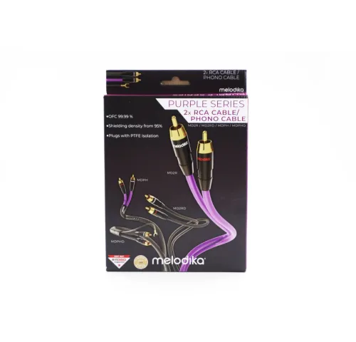 Melodika MD2RD10 — Purple Black Edition — це модернізований акустичний кабель RCA, створений для точної передачі аналогового стерео сигналу в домашніх Hi-Fi системах. В оновленій версії популярної серії Purple інженери компанії Melodika впровадили два важливі поліпшення: додали направленість кабелю