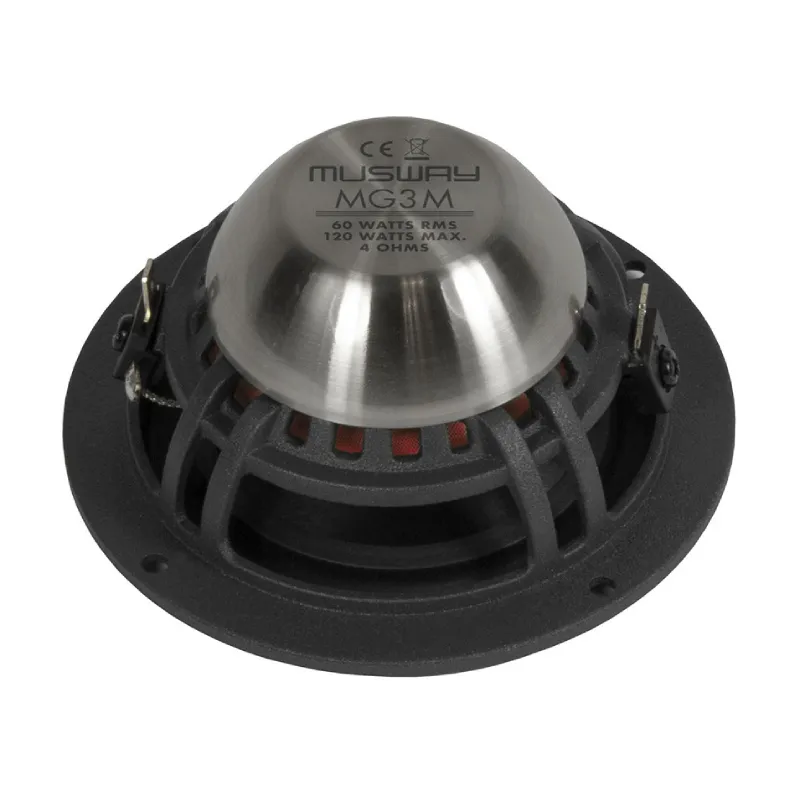 ХарактеристикиMG6.2W (Пара)Тип динаміка:: НизькочастотнийРозмір динаміка:: 6.5 дюймів (16.5 см)Номінальна потужність (RMS):: 125 ВтМаксимальна потужність:: 250 ВтІмпеданс:: 4 ОмЧастотний діапазон:: 39 – 5000 ГцМатеріал дифузора:: Алюмінієво-паперовий композитГлибина встановлення:: 6.7 смМонтажний отвір:: 14.3 смЗовнішній діаметр:: 16.6 смMG3M (Пара)Тип динаміка:: СередньочастотнийРозмір динаміка:: 3 дюйми (7.5 см)Номінальна потужність (RMS):: 60 ВтМаксимальна потужність:: 120 ВтІмпеданс:: 4 ОмЧастотний діапазон:: 200 – 18000 ГцМатеріал дифузора:: АлюмінійГлибина встановлення:: 4 смМонтажний отвір:: 7.3 смMG6.2T (Пара)Тип динаміка:: Високочастотний (твітер)Діаметр мембрани:: 1.1 дюйма (26 мм)Номінальна потужність (RMS):: 125 ВтМаксимальна потужність:: 250 ВтІмпеданс:: 4 ОмЧастотний діапазон:: 2200 – 30000 ГцМатеріал мембрани:: Шовкова купольнаГлибина встановлення:: 1.95 смМонтажний отвір:: 4.4 смЗовнішній діаметр:: 4.9 см