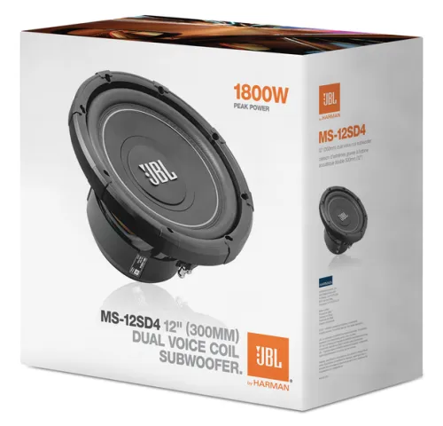 Сабвуфер преміум-класу JBL MS-12SD4 із опором 4 Ом.Переваги JBL MS-12SD4:Лита алюмінієва рамаПрошита тришарова окантовкаВентильований магніт у зборіГнучка конструкція із здвоєнною звуковою катушкоюНевеликі герметичні та вентильовані об'єми корпусуСполучні клеми на пружинахСумісність із іншими продук