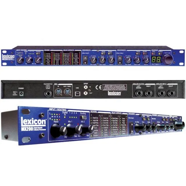 Процесор ефектів Lexicon MX200 – це подвійний ревербератор/процесор ефектів, який сконструйований як для концертного, так і для студійного використання. MX200 використовує глибокі, багаті алгоритми ревербераторів та ефектів, що склали легенду Lexicon, а також відрізняються простотою використання. У студійному використанні Lexicon MX-200 підключається за інтерфейсом USB та працює як "hard-ware plug-in". Це дозволяє користувачеві легко додавати легендарні Lexicon ефекти до міксу в комп'ютері з повною автоматизацією.