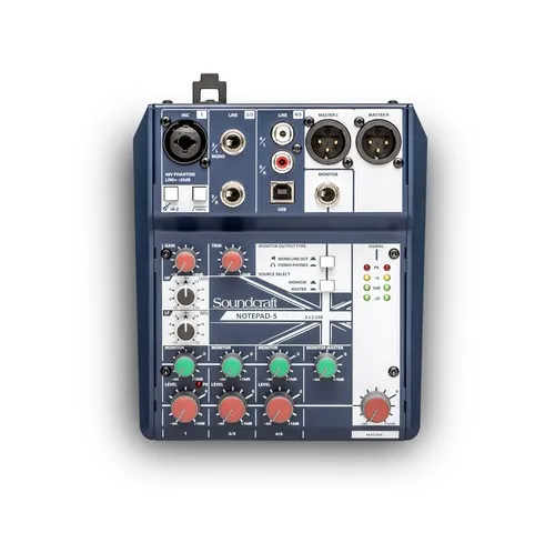 Soundcraft Notepad-5 - це компактний 5-канальний пульт мікшера, який надає легендарне звучання Soundcraft для вашої музики, подкастів або відео. Notepad-5 поєднує професійні аналогові компоненти, відому цифрову обробку сигналів HARMAN і вбудований USB-аудіоінтерфейс для використання з вашим улюблени