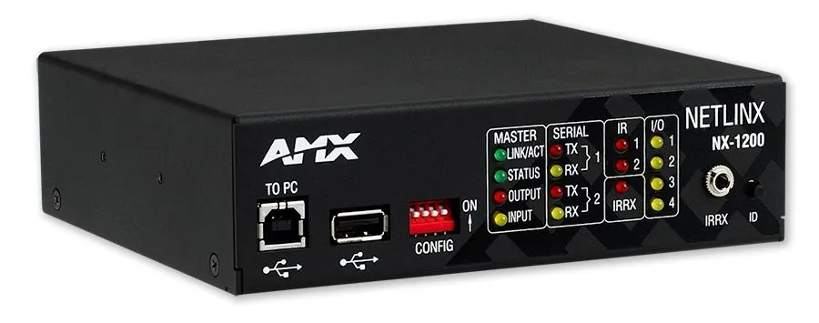 AMX NX-1200 - керуючий пристрій для систем розумного будинку. NX-1200 є мережевим контролером, розробленим для управління обладнанням різного призначення і дозволяє передавати мультимедійні дані аналогових і цифрових форматів в окрему кімнату або декілька невеликих кімнат і може підтримувати пристро