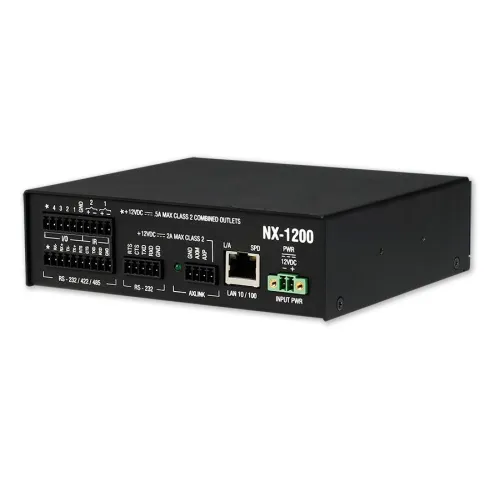 AMX NX-1200 - керуючий пристрій для систем розумного будинку. NX-1200 є мережевим контролером, розробленим для управління обладнанням різного призначення і дозволяє передавати мультимедійні дані аналогових і цифрових форматів в окрему кімнату або декілька невеликих кімнат і може підтримувати пристрої з різними форматами зв'язку. NX-1200 ідеально підходить для невеликих класів, переговорних кімнат, невеликих конференц-залів, навчальних приміщень і багатозонних систем з невеликою кількістю пристроїв, де потрібно компактний пристрій управління з універсальним монтажем.