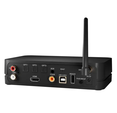 ХарактеристикиПідтримувані потокові протоколи: google chromecast, apple airplay, spotify connect (включаючи spotify hifi), roon ready (швидко), dlna та bluetooth 4.2.Стандарт wifi: ieee 802.11a/b/g/n та 802.11ac, дводіапазонний 2,4Гц/5,8ГГцМаксимальна роздільна здатність: 192 кГц (24 біти)Швидкість передачі: 48 – 96 кГц / 24 бітTri-band: 2,4/5,2/5,8 мм (автоматичне перемикання діапазонів)Дротові входи: аналоговий (стерео) роз'єм 3,5 мм, аналоговий (стерео) rca, (3x) оптичний (s/pdif) toslink 192 кГц/24 біт, коаксіальний (s/pdif) rca 192 кГц/24 біт, hdmi arc hdmi 192 кГц/24 біт, USB аудіо тип b 192 кГц/24 бітЖивлення: зовнішній адаптер змінного струму 100-240, 50/60 гц, 5 в при 3 а.Розміри та вага: 172 х 101 х 42 мм, 350 г