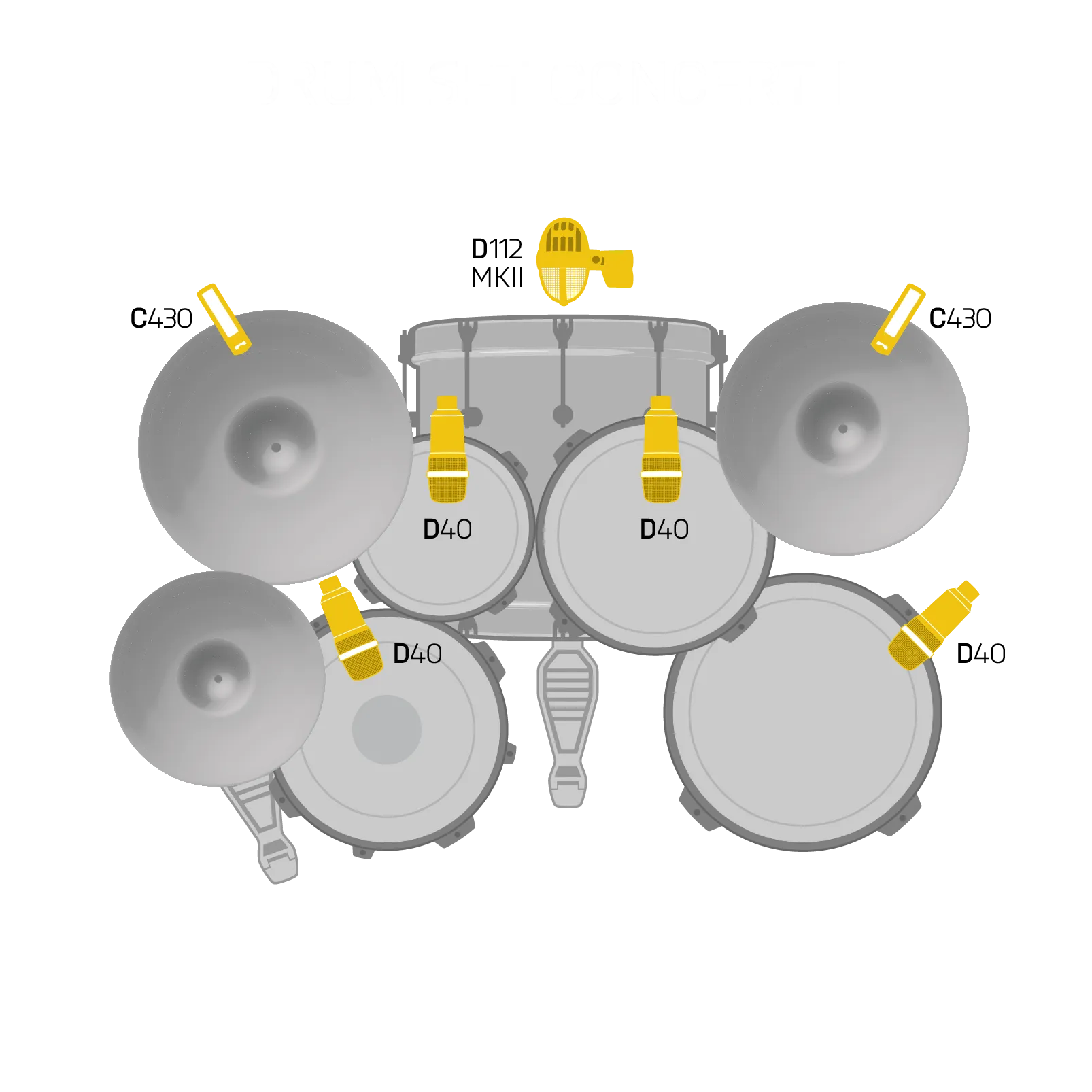 Профессиональный набор ударных микрофонов Drum Set Concert I предлагает полную коллекцию микрофонов, разработанных для работы даже в самых жестких условиях сцены. Семь микрофонов и аксессуаров упакованы в прочный алюминиевый футляр для переноски, так что у вас есть все, что нужно, чтобы собрать полный комплект для ударной установки, а также микрофоны для бас-гитар и гитарных усилителей, духовых и других инструментов. В коллекции представлена новейшая версия легендарного басового микрофона D112 MKII, компактного накладного микрофона C430 и популярного барабанного микрофона D40. Каждый из них отличается максимальной высокой SPL-обработкой и прочным металлическим корпусом для обеспечения отличного звучания ночь за ночью.