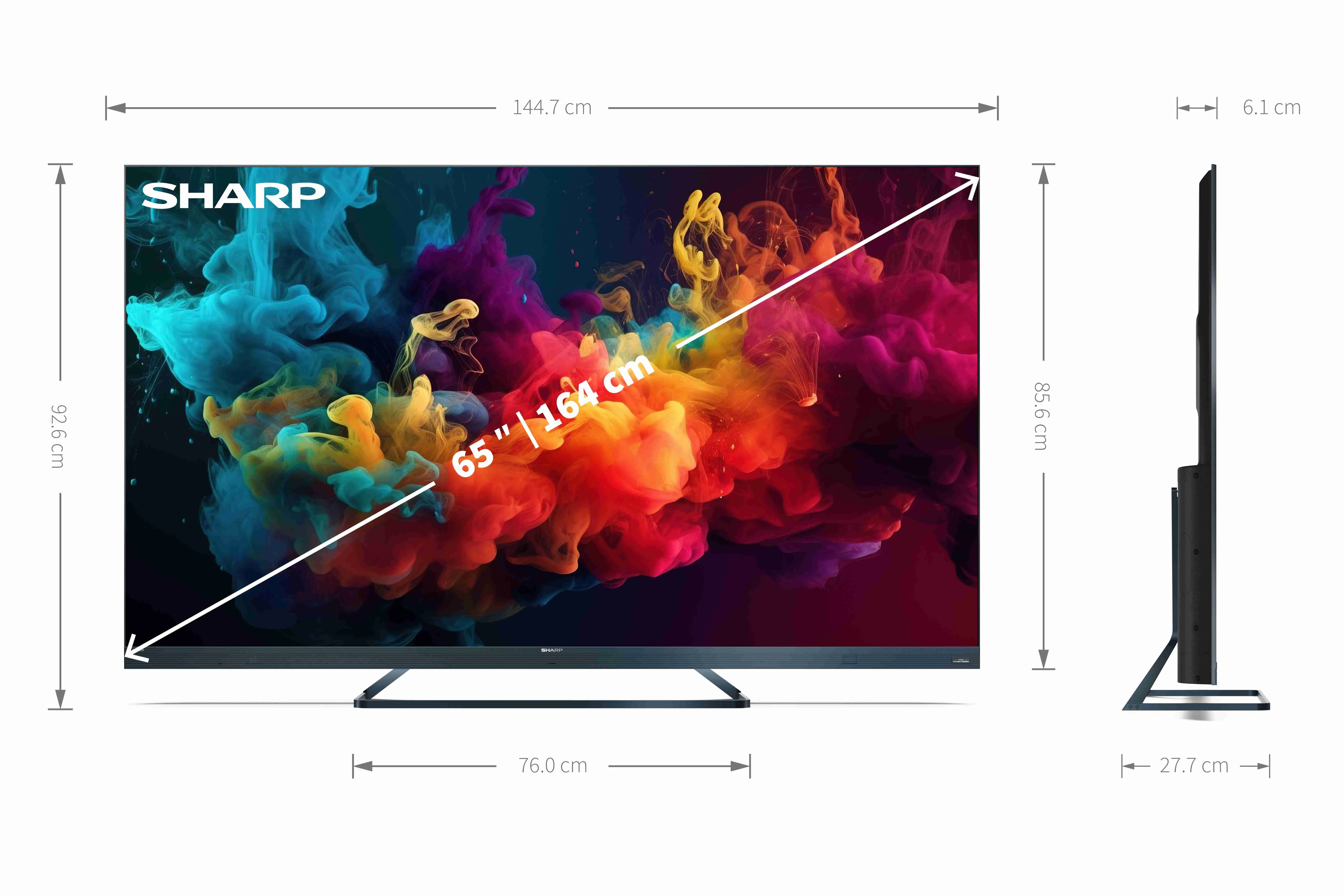 Sharp 65FQ5EG: 65-дюймовый 4K Ultra HD Google TV™ с поддержкой 144Hz и квантовыми точкамиИзображение: Sharp 65FQ5EG предлагает превосходное 4K Ultra HD разрешение с использованием технологии квантовых точек. Это обеспечивает богатые, живые цвета и удивительную детализацию, особенно при воспроизведен