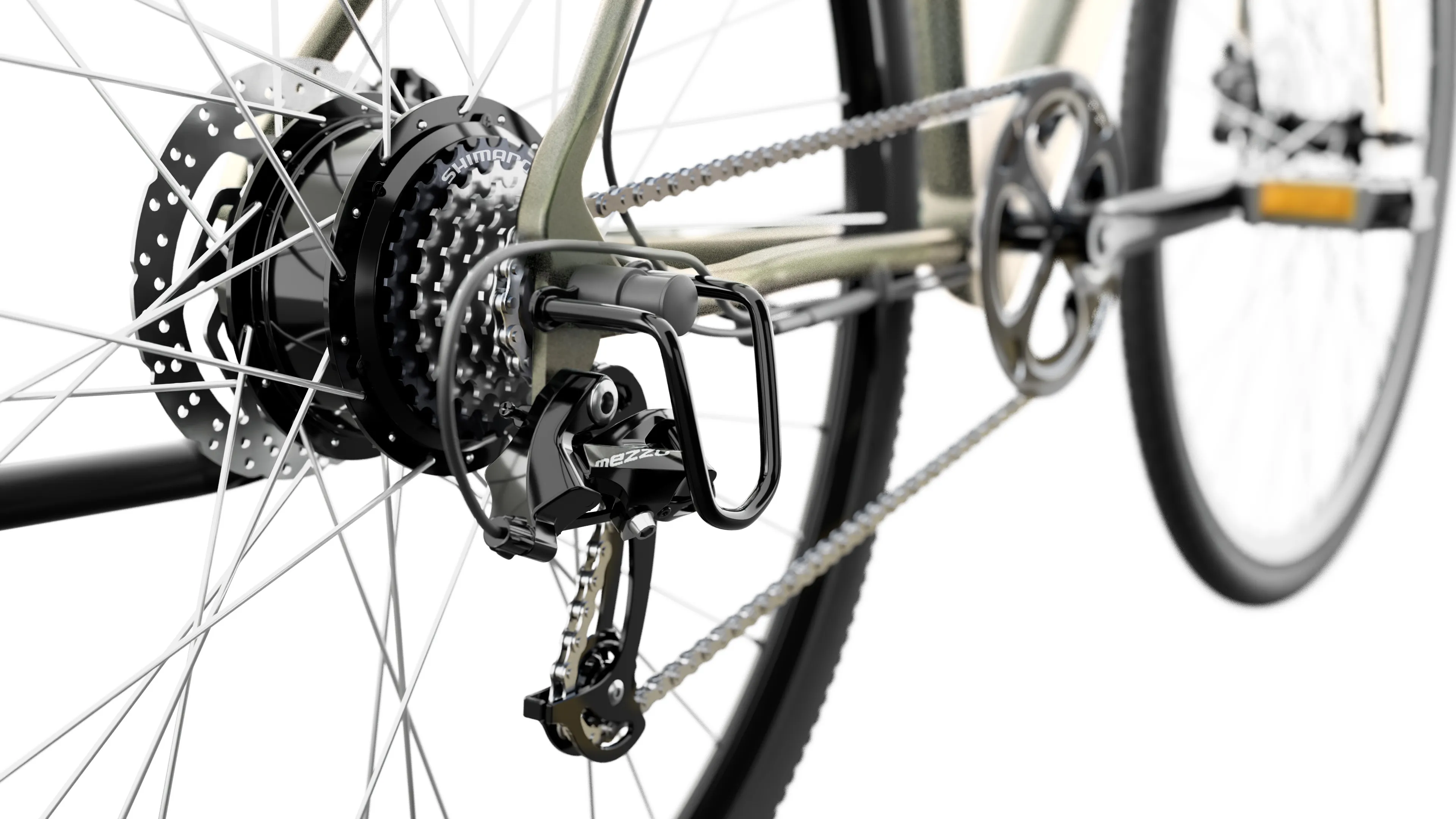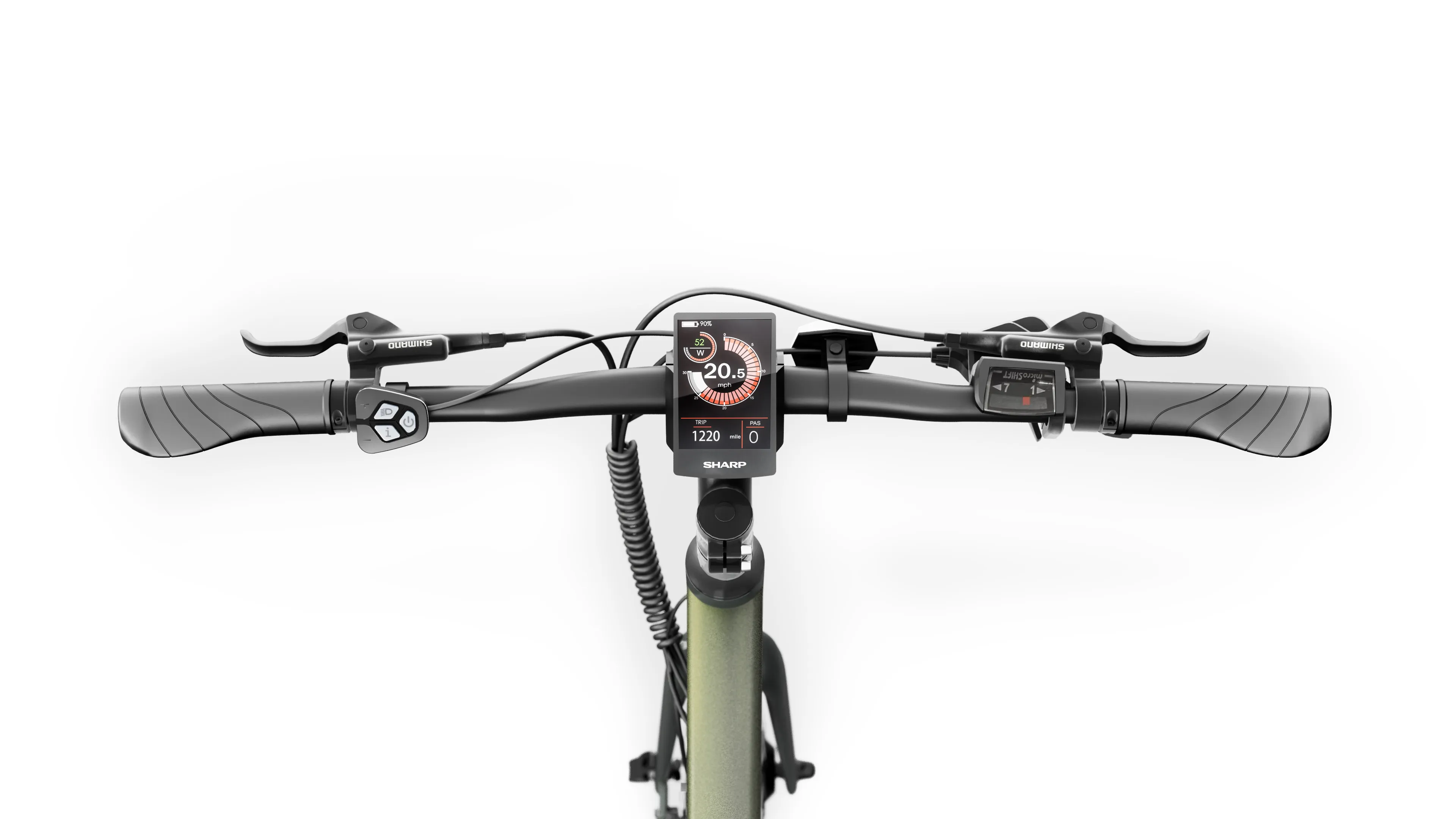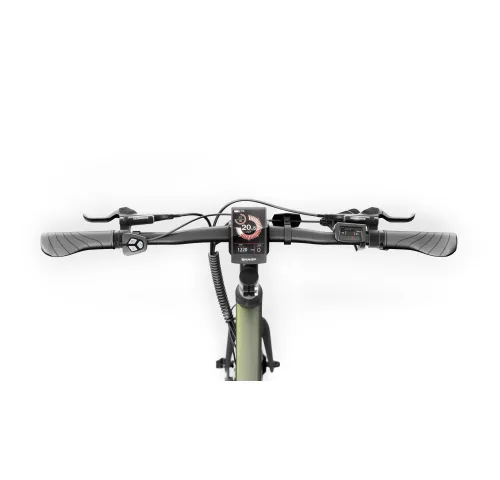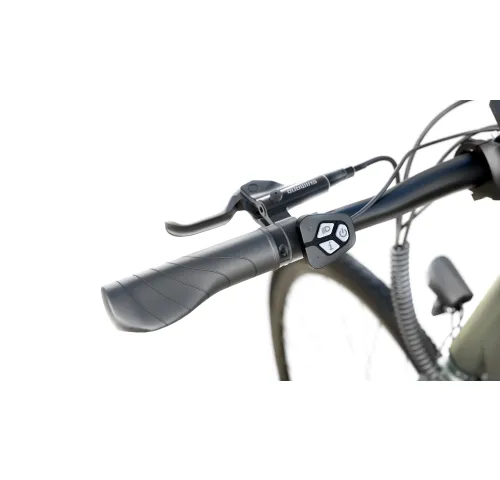 ХарактеристикиТип: Гибридный электровелосипедЦвет рамы: Оливково-зеленый перламутровый.Размер рамы: 53 см (21”)Максимальная скорость: 25 км/чМаксимальный пробег: до 85 кмДопустимая нагрузка: 120 кгРекомендуемый рост пользователя: 170–190 смМотор: 250 Вт, 36 В, заднее размещениеКрутящий момент двигателя: 35 Н·мАккумулятор: 7.8 Ач, 280 ВтчВремя зарядки: 3–4 часаПередача: 7 скоростей, microShiftКассета: Shimano AMFTZ5007428 (14–28Т)Шатуны: 170 мм, анодированный алюминий.Тормоза: Shimano BL-MT200, гидравлические с роторами 16 смКолеса: 28 дюймов (700C x 35C, шины Kenda)Дисплей: Цветной TFT LCD, IP66Вес нетто: 19.5 кгВес брутто: 27.5 кгРазмеры (Д x В x Ш): 172 x 102.5 x 69.5 смРама: Алюминиевый сплавПередняя вилка: Стальная, с возможностью установки дисковых тормозовРулевая колонка: Алюминий 680 ммПодседельный штырь: Алюминиевый, Ø2.72 смОснащение: Встроенные светодиодные фары, быстросъемные элементы, индикаторы уровня заряда, автосбережение энергии