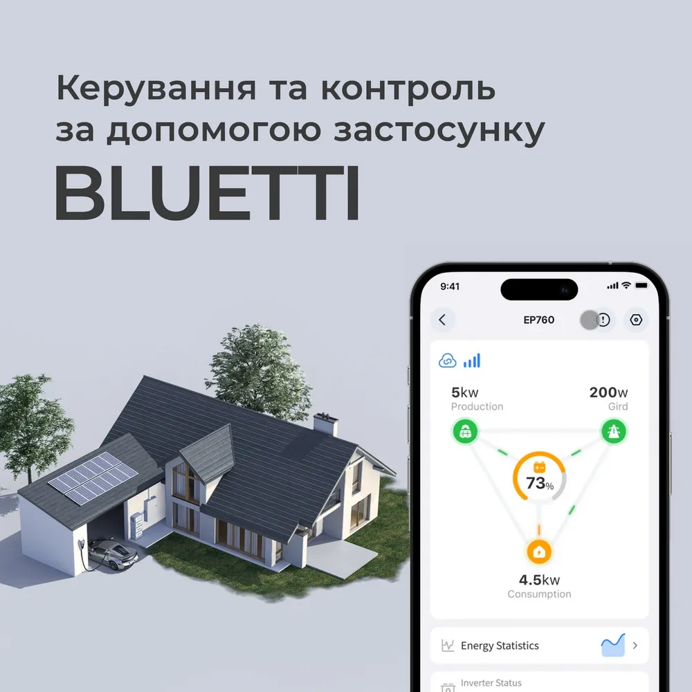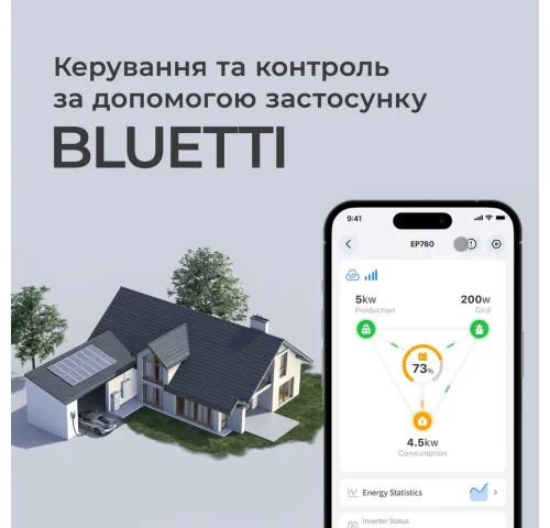 ОписаниеИнвертор Bluetti EP760 с двумя аккумуляторными модулями Bluetti B500 — это полноценная модульная система энергоснабжения для всего дома.Главные особенности• До 7600 Вт однофазной мощности для питания энергоемких устройств.• Огромная входная мощность до 9000 Вт от источника солнечной энергии.• Модульная конструкция, позволяющая достичь до 19840 Вт·ч (при подключении 4 аккумуляторных модулей Bluetti B500).• Непревзойденный уровень безопасности благодаря литий-железо-фосфатным (LiFePO₄) батареям.• Идеальная совместимость как с существующими, так и с новыми системами солнечной энергии.• Максимальное удобство для быстрой установки.ВНИМАНИЕ! Инвертор Bluetti EP760 может выполнять функции портативной электростанции только при подключении к нему внешнего аккумуляторного модуля (или нескольких модулей) Bluetti B500.Гибкое решение для вашей энергонезависимостиИнвертор Bluetti EP760 с двумя аккумуляторными модулями Bluetti B500 — это полноценная модульная система энергоснабжения для всего дома.Такая система позволить сократить расходы на электроэнергию в пиковые часы и обеспечит беспрерывное питание во время отключений и перебоев. Энергоавтономсть, которую обеспечит система на базе Bluetti EP760, сделает вас по-настоящему энергонезависимым. А простота установки позволит добиться этой свободы без больших затрат времени и денег.Эффективное управление питанием стало прощеЕсли у вас есть солнечные панели, то, интегрировав с ними Bluetti EP760, вы сможете использовать бесплатную солнечную энергию, чтобы питать ваши приборы даже ночью или в пасмурные дни с непревзойденной эффективностью. Так вы из потребителя энергии превратитесь в ее производителя. И вы не только сможете лучше контролировать свое энергопотребление, но и сможете значительно сократить свои счета за электричество.Элегантный и долговечныйИ инвертор, и аккумуляторные модули обладают надежным классом защиты IP65, что делает всю систему устойчивой к пыли и влаге и обеспечивает ее безупречную работу даже будучи установленной в вашем подвале. Кроме того, в системе используется передовая технология шумоподавления, гарантирующая ее тихую работу — уровень шума не превышает 50 дБ. Вы получите настоящее удовольствие от использования системы благодаря идеальному сочетанию функциональности и стильного внешнего вида.Всё управление энергообеспечением дома — на кончиках ваших пальцевБлагодаря интуитивно понятному приложению BLUETTI вы можете управлять всеми аспектами работы системы: контролировать в режиме реального времени потребление энергии, быстро переключаться между различными режимами работы и обновлять программное обеспечение. И вы сможете делать всё это из любого места просто с помощью вашего смартфона.Подбирайте мощность системы под ваши потребностиНоваторский модульный дизайн системы на базе EP760 делает ее идеальной системой энергообеспечения, которая может адаптироваться к вашим потребностям. Помимо двух аккумуляторных блоков B500, которые идут в комплекте, к одному инвертору EP760 можно подключить еще до двух B500, что позволяет достичь емкости системы в 19,8 кВт·ч. Кроме того, инвертор EP760 обеспечивает потрясающую выходную мощность до 7600 Вт, чего будет достаточно для питания практически любых ваших приборов.Более безопасное и долговечное хранение энергииВ аккумуляторных модулях B500 используются л