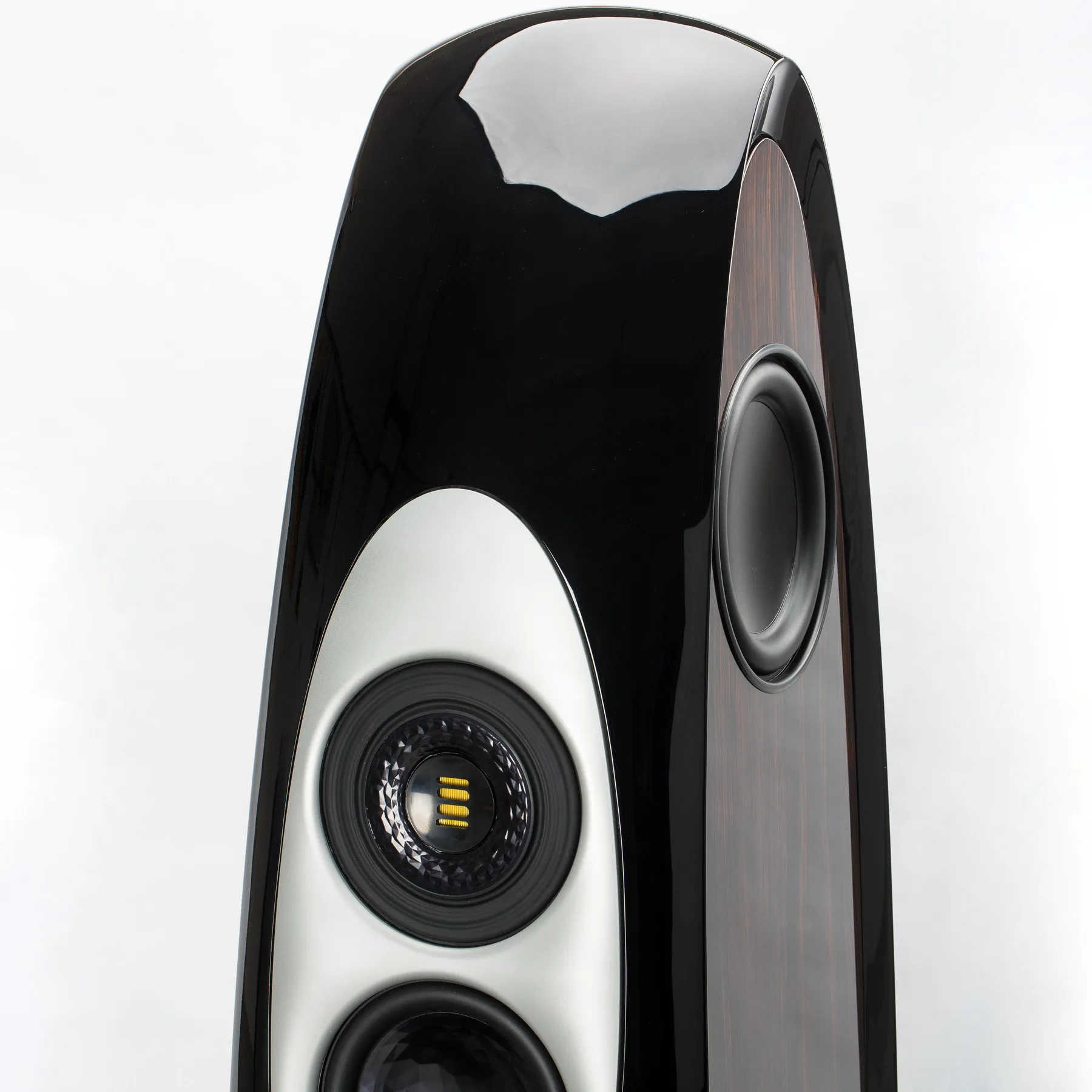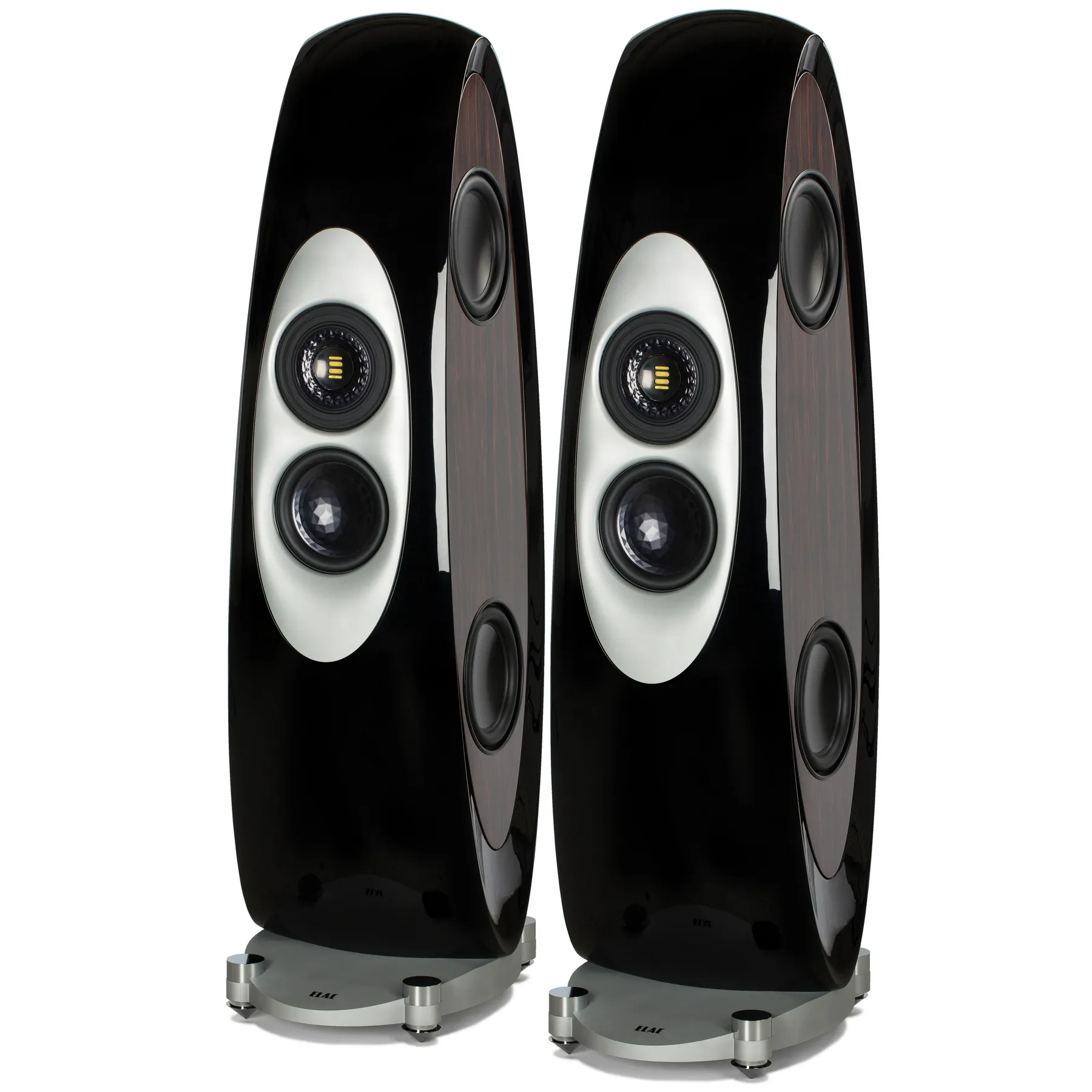ОписаниеТоповый напольник ELAC Concentro, выпущенный в честь 90-летнего юбилея бренда ELAC, можно назвать шедевром инженерной мысли. Компания использовала здесь все свои главные достижения в области акустики.Высокий 140-килограммовый корпус флагмана, закрепленный на монументальном алюминиевом основании, обладает плавной эллиптической формой, которую можно сравнить с футуристической скульптурой. Благодаря такому дизайну устраняются внутренние стоячие волны и резонансы, так как АС не имеет параллельных поверхностей. Основным материалом здесь выступает MDF высокой плотности. Фронт и тыл ELAC Concentro отделаны глянцевым лаком, а отделку боковин-овалов можно заказать на выбор: шпон, карбон или кожа. Также предлагается опция выбора любого цвета АС по шкале RAL.В каждую боковину встроены два 250 мм вуфера с жесткими алюминиево-бумажными диффузорами. В вуферах используются 3-дюймовые катушки и массивные магниты, а в тыл корпуса выведены два порта фазоинвертора. В итоге достигается чистый, точный и мощный бас.На фасаде АС находится коаксиальный динамик-гибрид VX-JET со 140 мм кольцевым СЧ-драйвером и встроенным в его центр ленточным твитером JET 6. Специальный регулятор позволяет выдвинуть/задвинуть VX-JET на 8 мм относительно корпуса, что гарантирует тонкую настройку под особенности помещения. Такая близкая к точечному источнику звука конструкция обеспечивает точную диаграмму направленности и абсолютную согласованность звучания излучателей. Под «гибридом» установлен 220 мм мидвуфер. Плавная форма лицевой панели ELAC Concentro оптимизирует дисперсию звуковых волн, излучаемых фронтальными динамиками.Диффузоры СЧ-драйвера и мидвуфера получили название “Crystal Membrane” и маркировку “AS-XR”, где XR — это extended range («расширенный динамический диапазон»). Согласно технологии Aluminum-Sandwich AS Technology к бумажному конусу клеится тонкая алюминиевая мембрана, прошедшая рельефную обработку и напоминающая кристалл. Звуковая катушка соединяется с бумажным конусом и с этой мембраной. В результате достигается превосходная жесткость, устраняются резонансы, расширяется динамический диапазон. Твитер JET 6 имеет неодимовый магнит и ультратонкую ленточную мембрану, которая обладает молниеносным откликом, высокой точностью передачи ВЧ, почти нулевыми искажениями и широким диапазоном частот с пиком в 50 кГц. Все динамики изолированы друг от друга внутренними перегородками.В основание встроены две пары позолоченных клемм, которые позволяют организовать биампинг или бивайринг. Для полного раскрытия потенциала ELAC Concentro рекомендуется использовать сильноточные усилители мощностью не менее 100 Вт на канал.Минимальный заказ 2 шт.