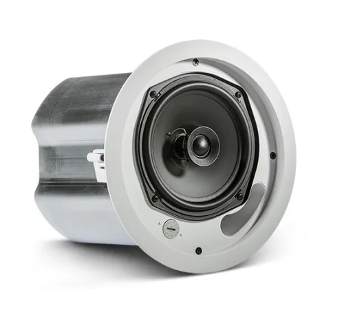 JBL Control 16C-VA – это полнодиапазонный потолочный громкоговоритель, сертифицированный по стандарту пожарной безопасности EN54-24. Акустическая система состоит из 6,5-дюймового высокотехнологичного низкочастотного динамика и 19-мм твиттера с мягким куполом и жидкостным охлаждением, установленных в