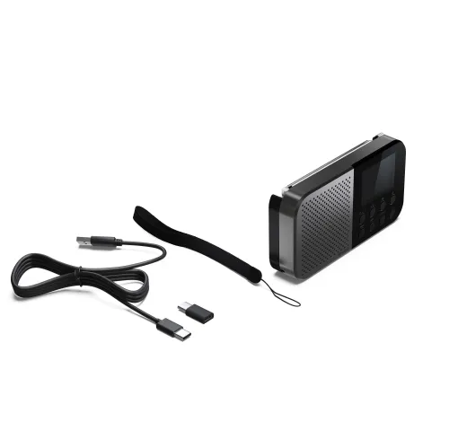 ХарактеристикиТип тюнера: DAB+/DAB/FMПамять станций: 120 (40 BestTune, 40 DAB, 40 FM)Bluetooth:: Версия 5.3, профили A2DP, AVRCP, кодек SBCАудио:: Монофонический динамик, декодирование AACРазъем для наушников: 3,5 ммДисплей:: Цветной, 2 дюйма (5.08 см), с регулировкой яркостиПитание: USB-C (5В, 2А) или встроенный литий-ионный аккумуляторАвтономная работа: До 12 часовВремя зарядки: Примерно 4 часаПотребление энергии: 5 Вт (работа), <0.5 Вт (ожидание), <0.005 Вт (выключенное состояние)Размеры устройства (Ш х В х Г): 13.0 x 7.0 x 2.6 смВес:: 0.16 кгКомплектация: Устройство, кабель USB-C to USB-C, переходник Micro USB to USB-C, документация пользователя