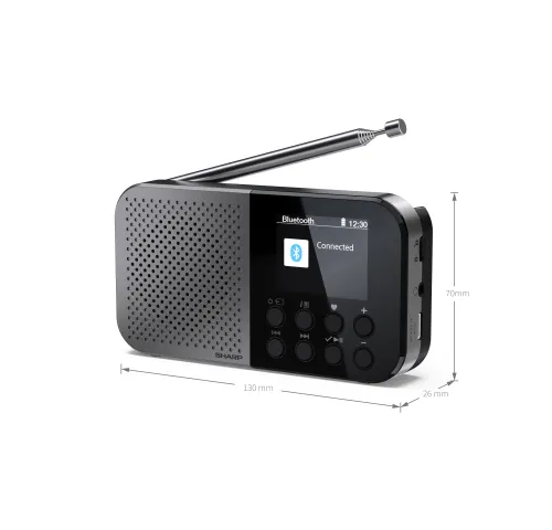 SHARP DR-P520GY – ультрапортативное цифровое радио с BluetoothSHARP DR-P520GY – это карманное цифровое радио в стильном сером цвете Storm Grey, сочетающее в себе современные возможности с исключительной портативностью. Его легкий корпус и удобный ремешок позволяют носить радио с собой повсюду – дома